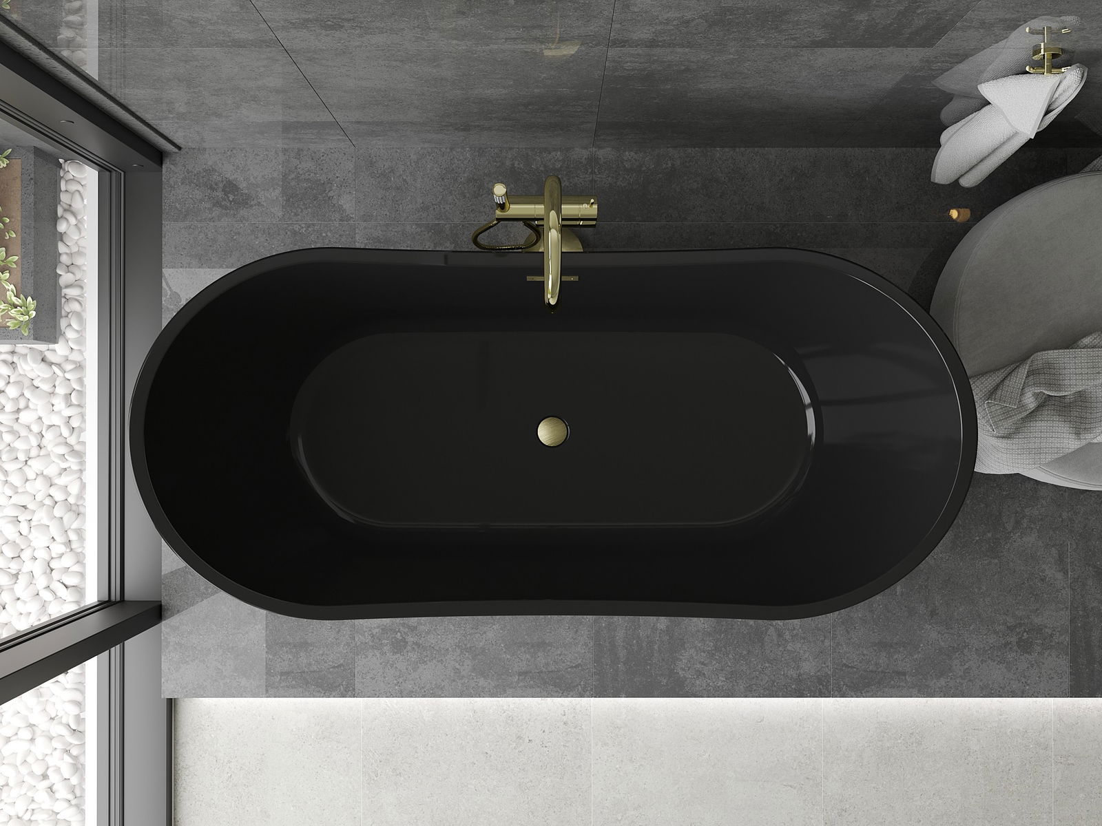 Mexen Montana brīvi stāvoša vanna 170 x 80 cm, melna, zelta matēts pārplūdes - 52011708070-55