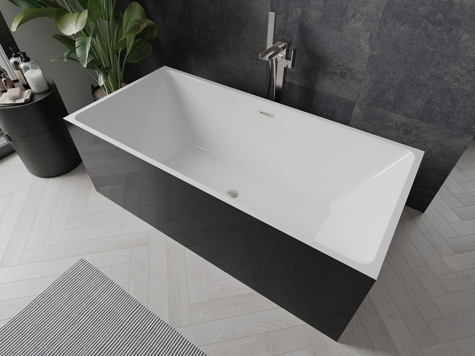 Mexen Nita brīvi stāvoša vanna 170 x 80 cm, balta/melna, matēts niķeļa pārplūdes - 52091708075-97