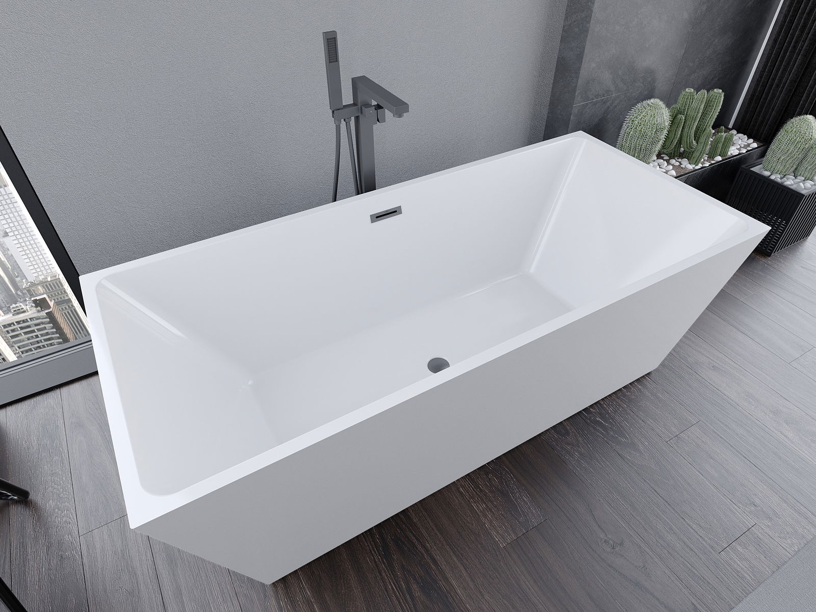 Mexen Lita brīvi stāvoša vanna 170 x 75 cm, balta, pārplūdes gun gray slīpēta - 52121707500-66