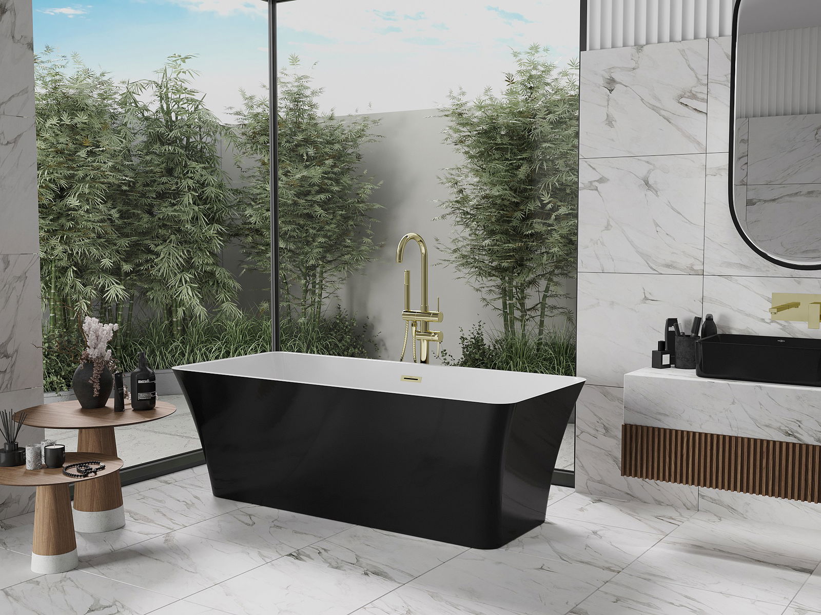 Mexen Tonia brīvi stāvoša vanna 170 x 75 cm, balta/melna, pārliešanas zelta matēts - 52171707575-55
