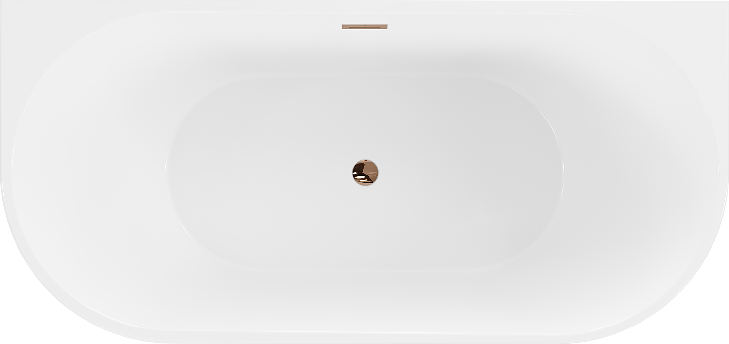 Ovāla brīvstāvoša pie sienas vanna ir ideāls dizaina un funkcionalitātes apvienojums. Izmēri 180 x 80 cm un dziļums 45 cm nodrošina komfortu peldēšanās laikā. Izgatavota no sanitārā akrila, pieejama elegantā balta-melna krāsu kombinācijā ar rožu zelta apdari, tā ir noturīga pret matētu virsmu un UV starojumu. Vanna ar pārplūdes atveri, montējama pie sienas, ietver sifonu un klik klak aizbāzni, kas padara to par praktisku izvēli jebkurai vannas istabai.