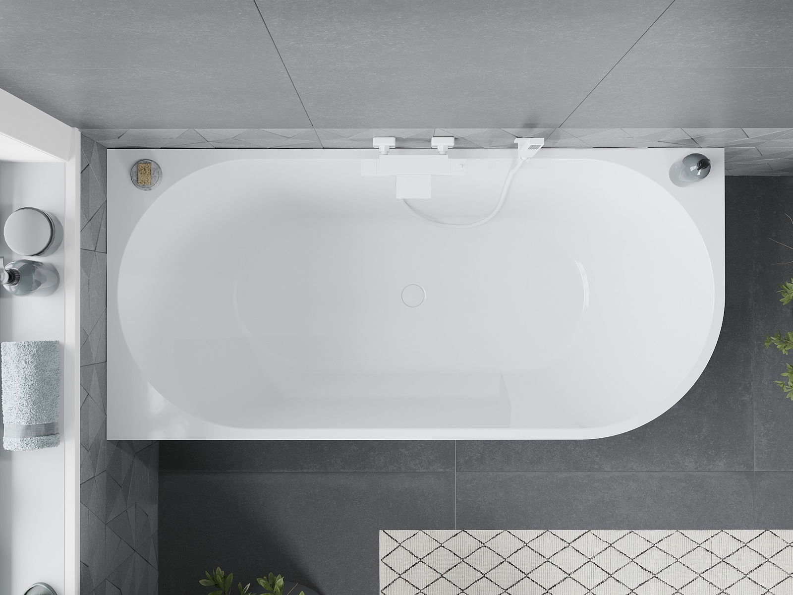 Mexen Mia brīvi stāvoša stūra vanna kreisajā pusē 150 x 75 cm, balta, balts pārplūde - 52691507500L-20