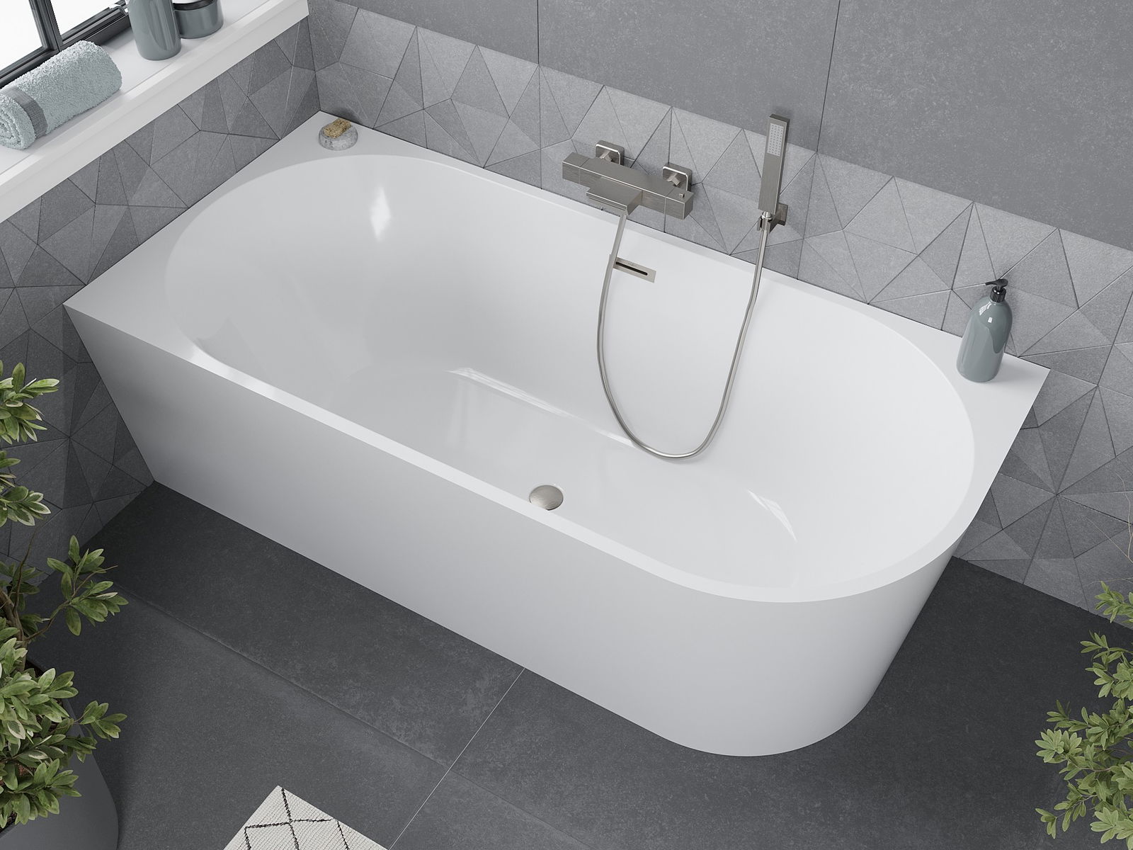 Brīvstāvoša stūra vanna ar izmēriem 150 x 75 cm ir elegants papildinājums jebkurai vannas istabai. Izgatavota no augstas kvalitātes sanitārā akrila, tā nodrošina izturību pret matēšanu un UV starojumu, kas garantē ilgstošu spīdumu. Balta krāsa kopā ar matētu niķeli piešķir tai modernu raksturu. Pārplūdes atvere un sifons komplektā palielina lietošanas ērtības. Pateicoties stūra montāžai, tā ideāli iekļaujas mazākās telpās, piedāvājot komfortu un stilu.