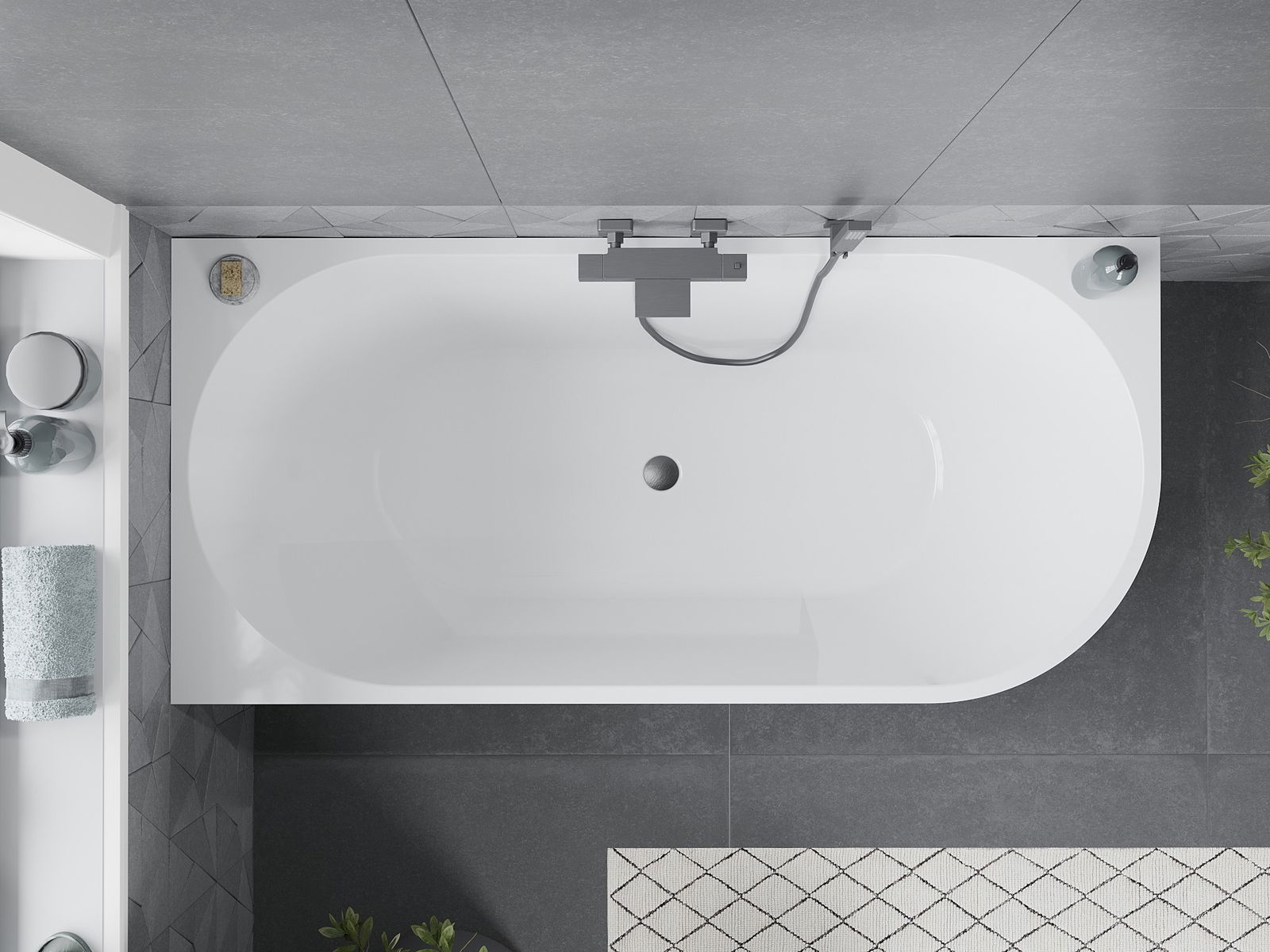 Mexen Mia brīvi stāvoša stūra vanna kreisā 160 x 75 cm, balta, pārplūde gun gray matēta - 52691607500L-66