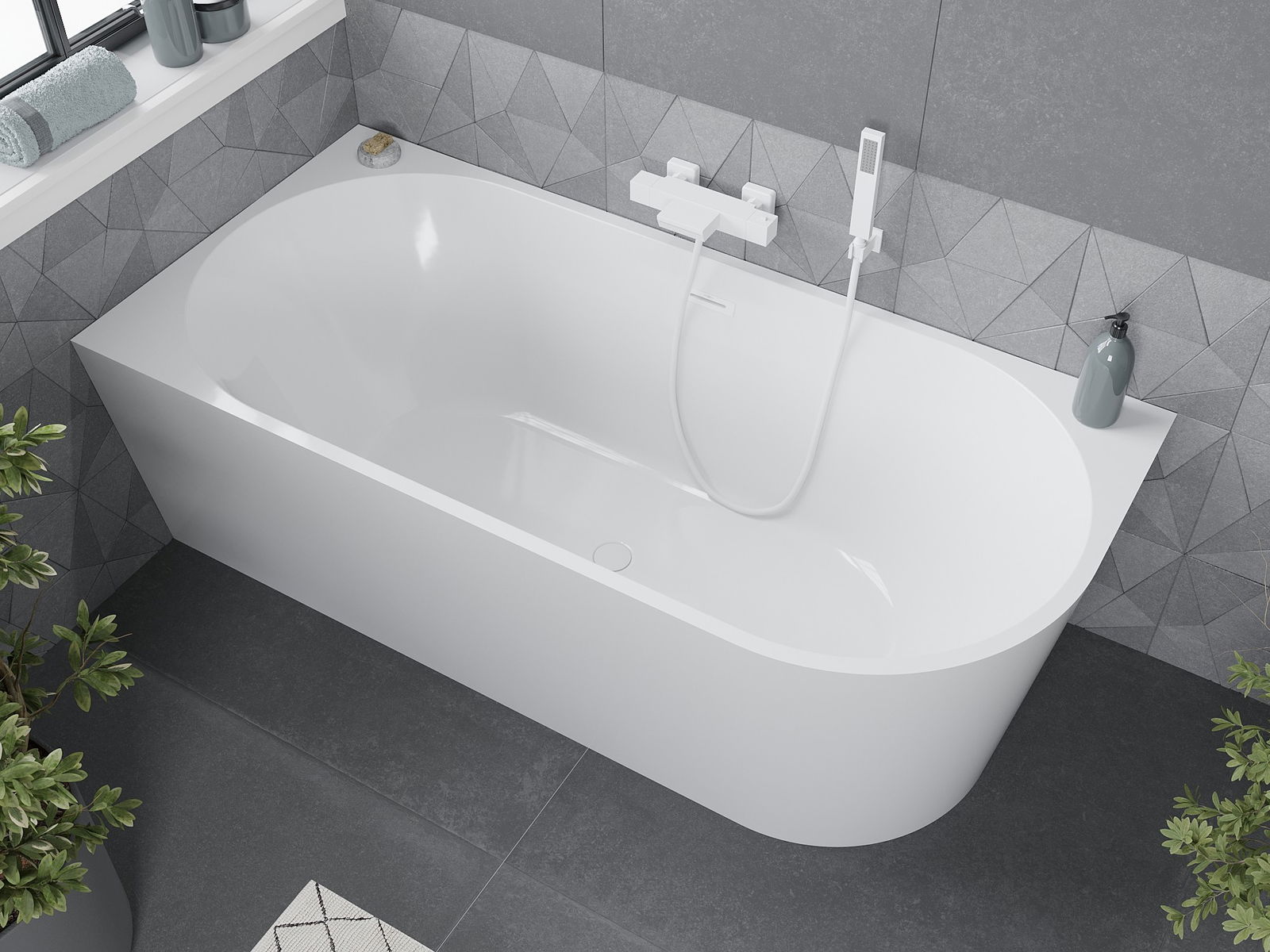 Mexen Mia brīvi stāvoša stūra vanna kreisā 170 x 80 cm, balta, baltā pārplūde - 52691708000L-20