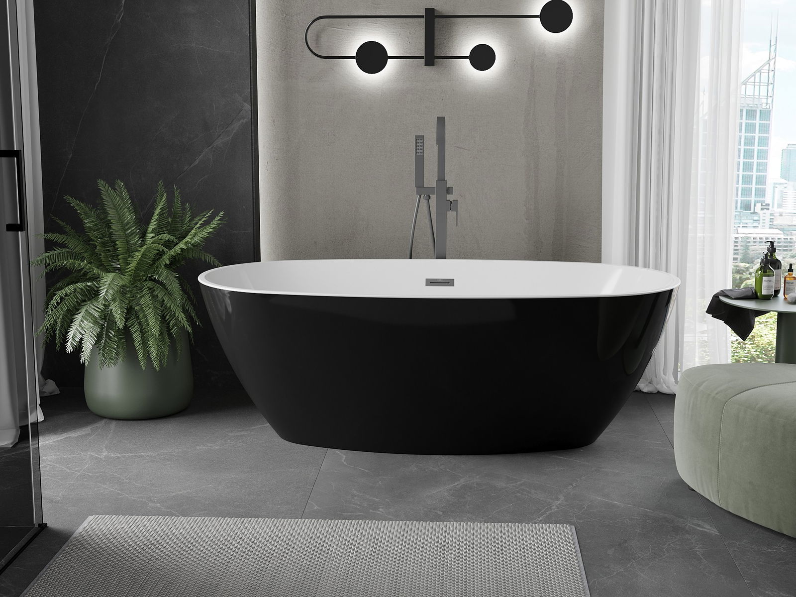 Mexen Eris brīvi stāvoša vanna 155 x 80 cm, balta/melna, pārplūde gun metal - 53441558075-95