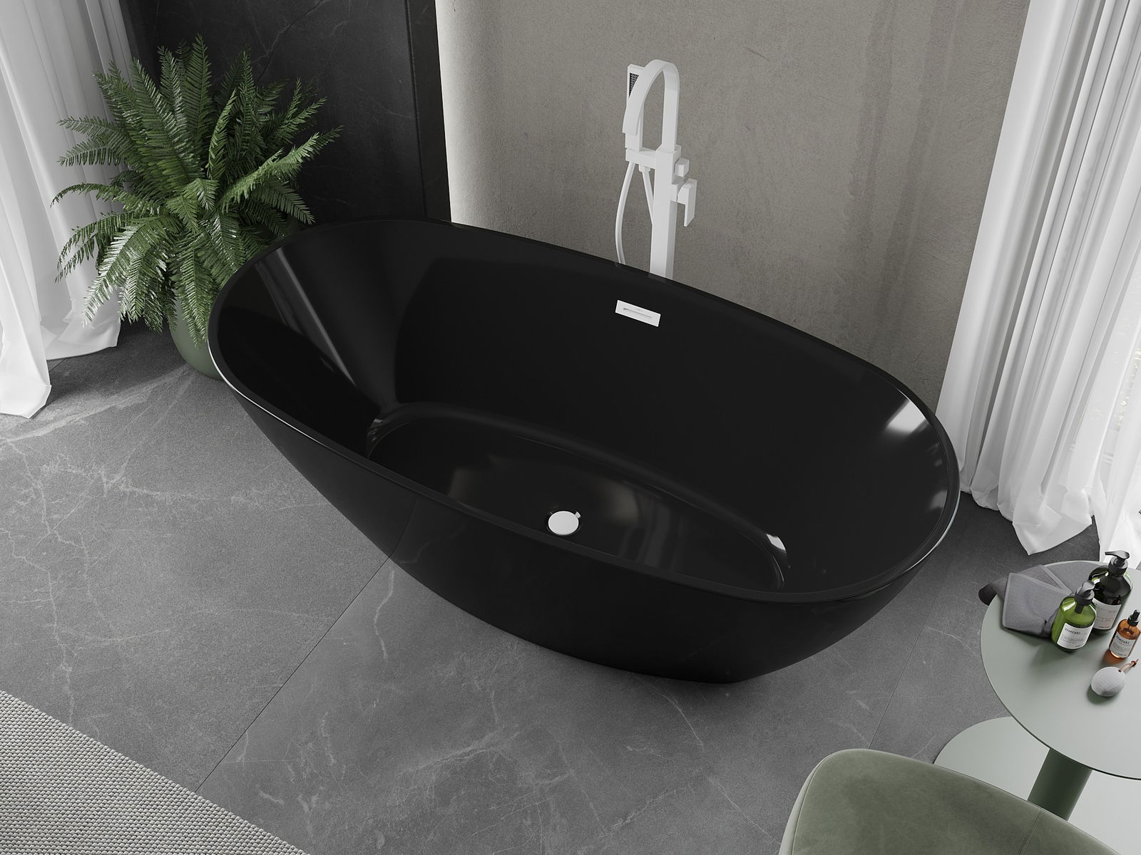 Brīvi stāvoša vanna 170 x 80 cm ir ideāls risinājums ikvienam, kurš vēlas izveidot elegantu telpu vannas istabā. Izgatavota no sanitārā akrila, tā izceļas ar noturību pret matēšanu un UV starojumu. Ovālais formas un melnā virsma ar augstu spīdumu piešķir modernu izskatu. Komplektā iekļauta pārplūde un sifons, kas nodrošina lietošanas ērtumu. Turklāt, tās dziļums 46 cm un augstums 58 cm padara vannas lietošanu īpaši komfortablu.