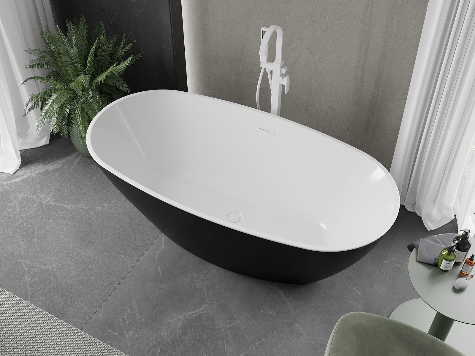 Mexen Eris ir eleganta brīvi stāvoša vanna ar izmēriem 170 x 80 cm, ideāli piemērota mūsdienīgiem vannas istabām. Izgatavota no sanitārā akrila, nodrošina izturību un noturību pret matēšanu un UV stariem. Tās ovāla forma un spīdīga virsma piešķir tai stilīgu izskatu, un baltā-melnā krāsu gamma lieliski sader ar dažādiem iekārtojumiem. Vanna ir paredzēta brīvai montāžai un aprīkota ar pārplūdes atveri un sifonu ar klik klak korķi, kas palielina lietošanas komfortu.