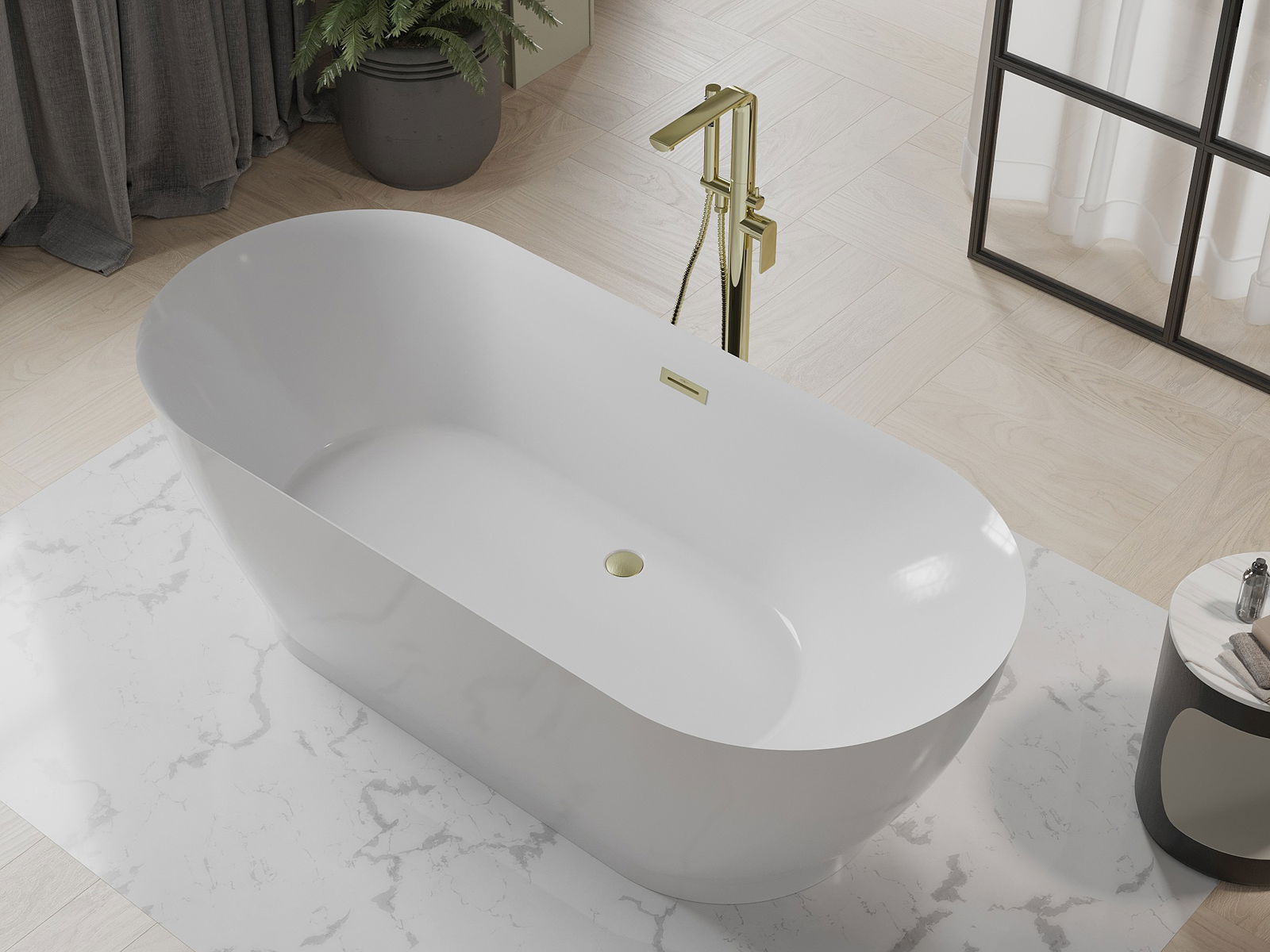 Mexen Roxy brīvi stāvoša vanna 180 x 85 cm, balta, pārplūde zeltīta pulēta - 51201808500-55