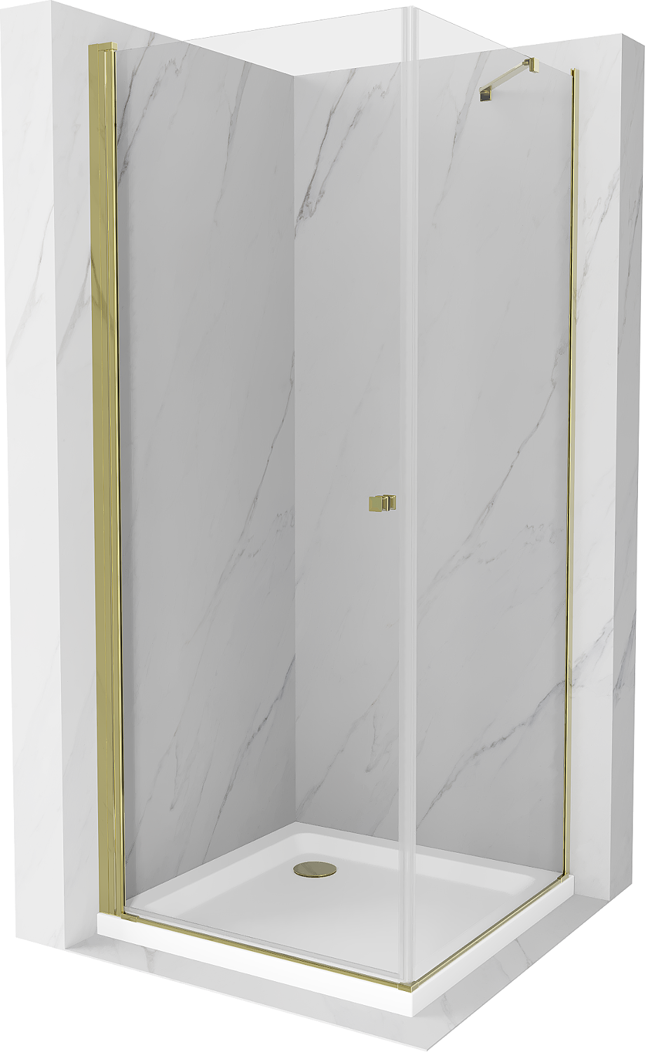 Mexen Pretoria vērtamas dušas kabīne 80 x 80 cm, caurspīdīga, zelta + Flat dušas paliktnis - 852-080-080-50-00-4010