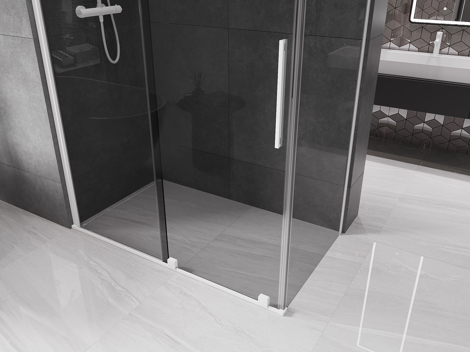 Mexen Velar bīdāma dušas kabīne 160 x 100 cm, grafīts, balta - 871-160-100-41-20