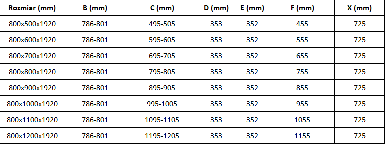 Izmērs: 80x100 cm (durvis 80 cm, siena 100 cm)