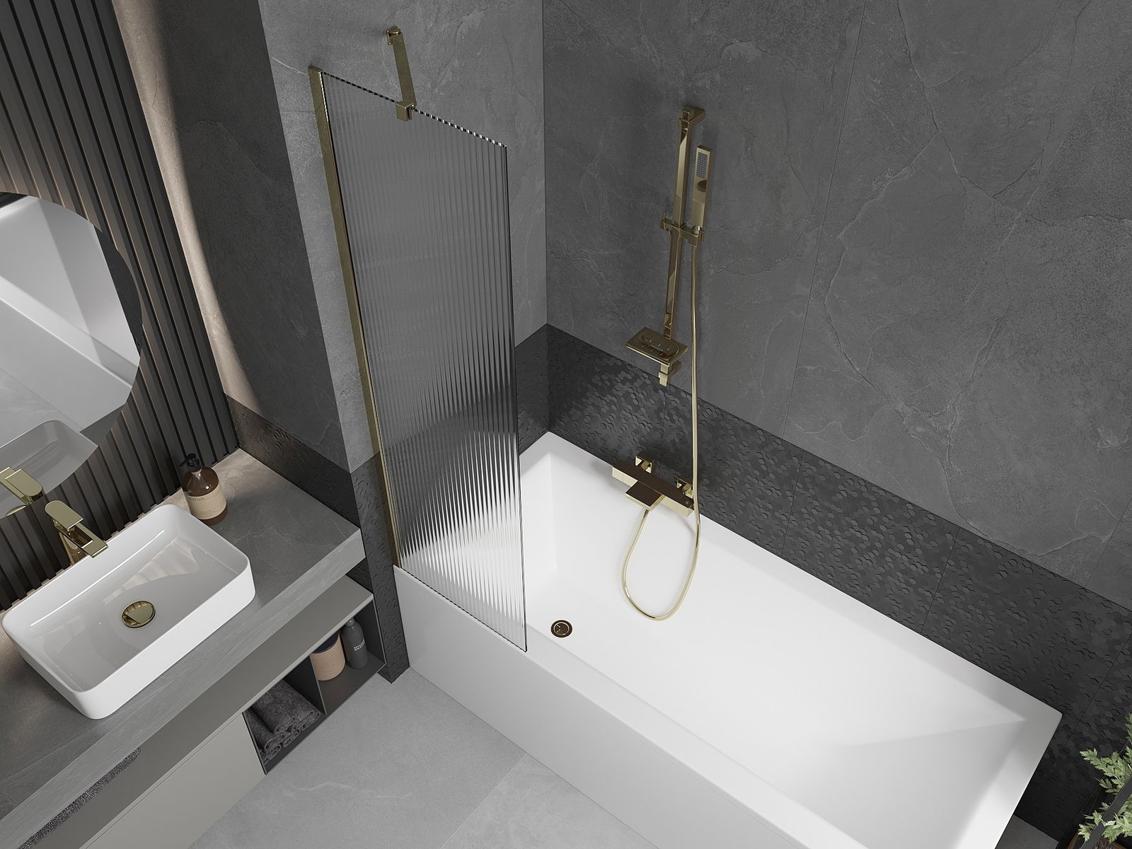 Mexen Next dušas ekrāns ar vienu vērtni 50 x 150 cm, svītras, zelta - 895-050-000-00-09-50