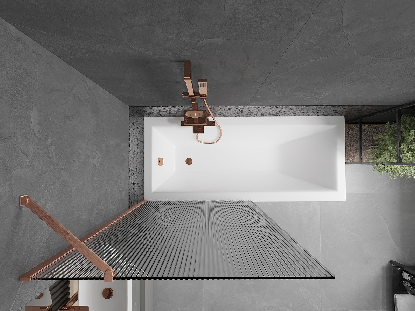 Mexen Next vienas durvju vannas ekrāns 90 x 150 cm, svītras, matēts varš - 895-090-000-00-09-65