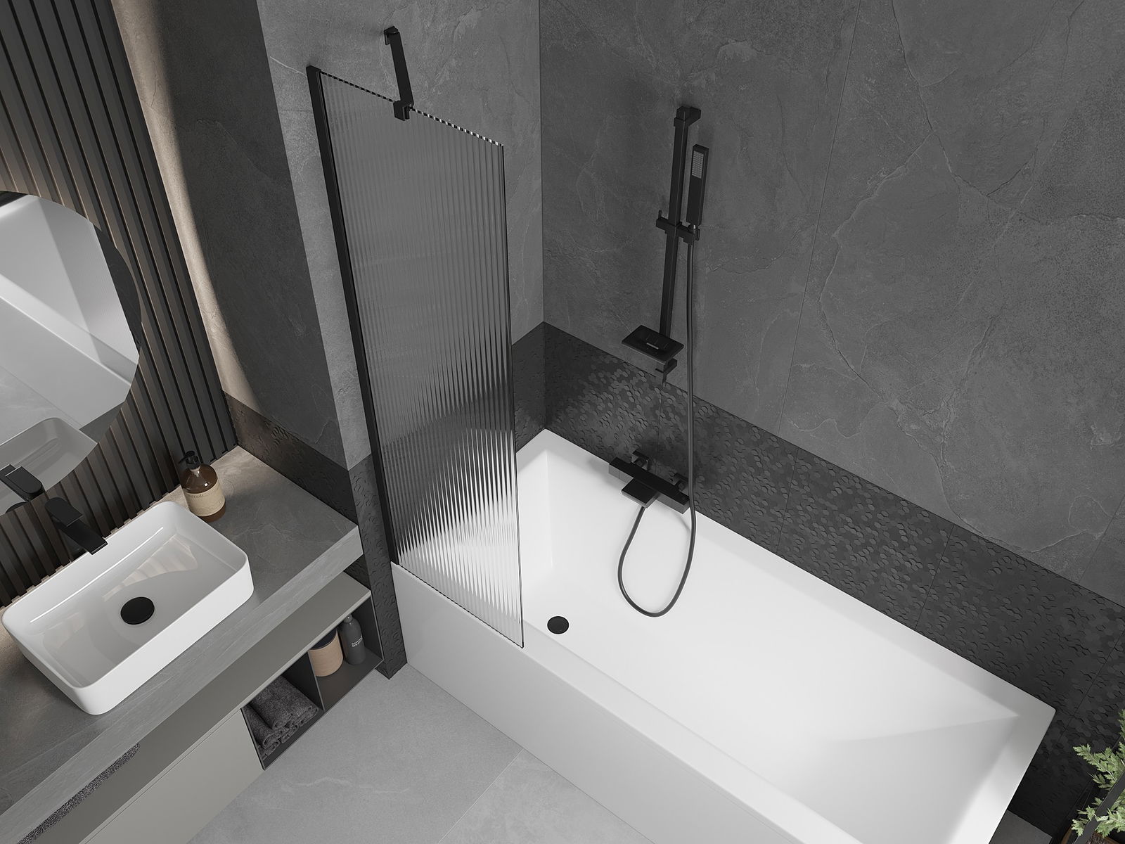 Efektīva aizsardzība pret ūdens izšļakstīšanos peldēšanās laikā. Ekrānam ir blīves, kas ideāli pielāgojas stikla virsmai un vannas malai. Funkcionāls risinājums, kas nodrošina drošību un vieglu tīrību.