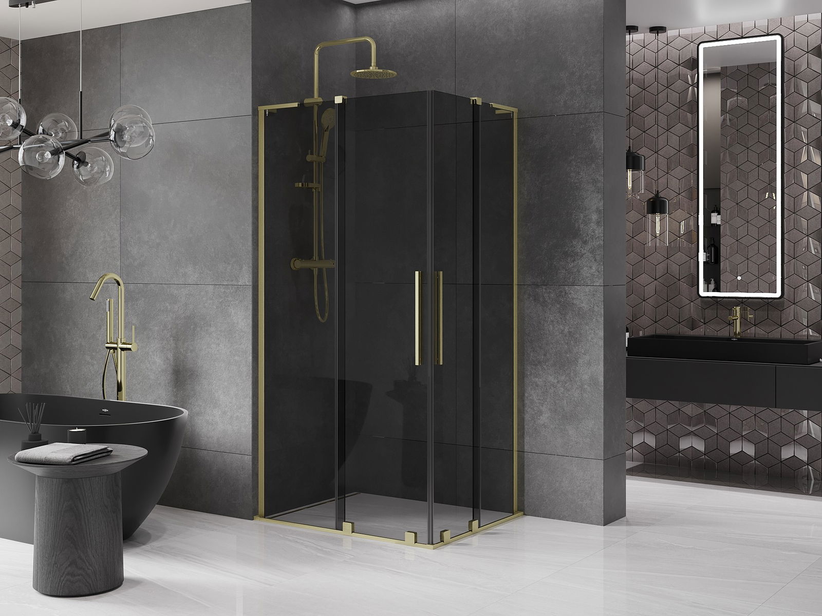 Mexen Velar L Duo bīdāmā dušas kabīne 100 x 90 cm, grafīta, ar zelta suku - 871-100-090-02-43-55