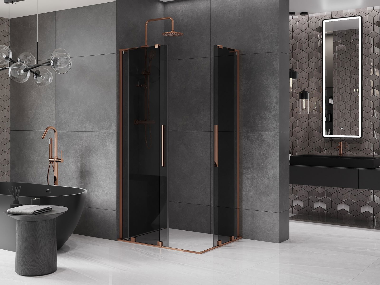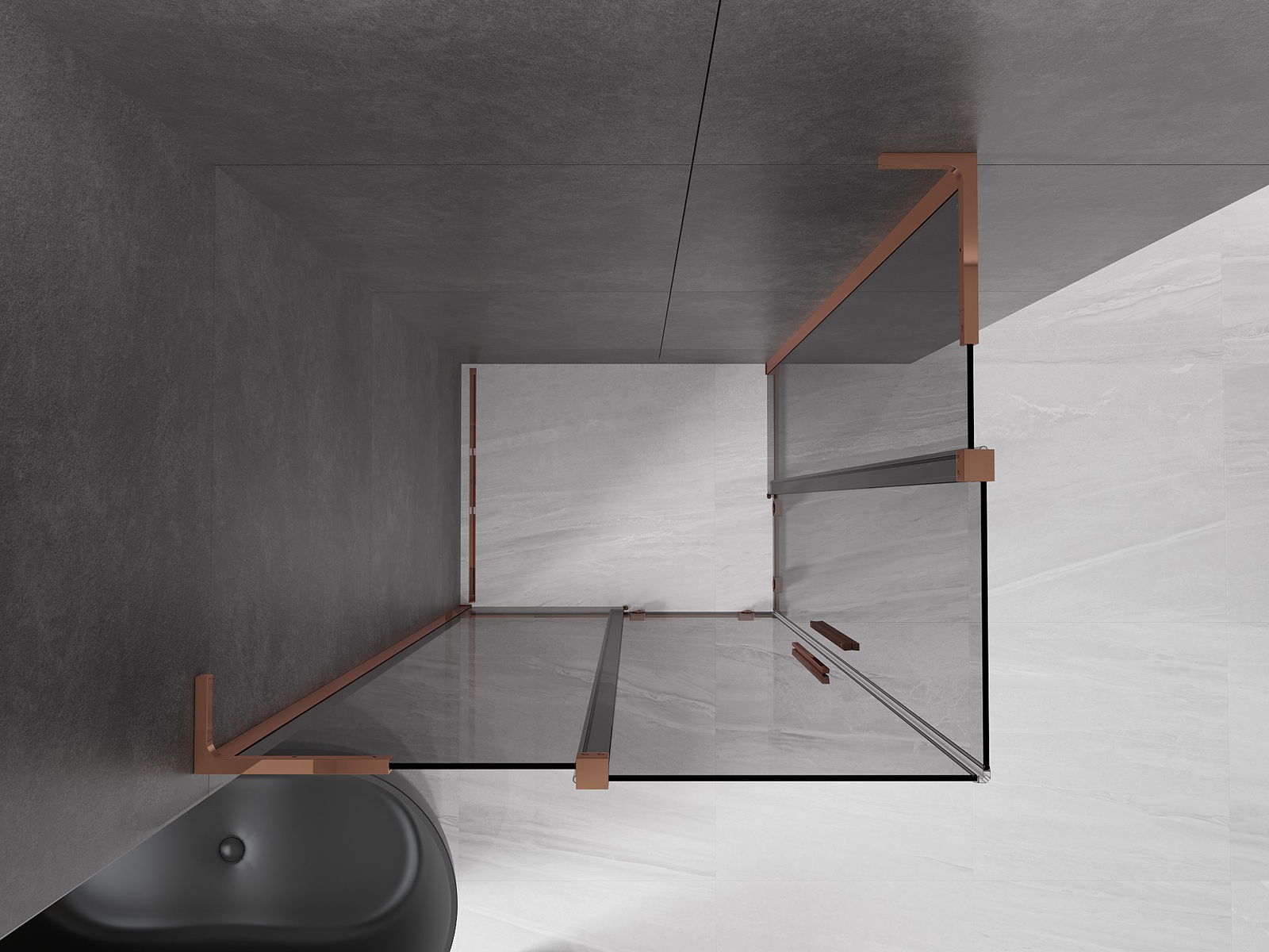 Mexen Velar L Duo bīdāmā dušas kabīne 90 x 80 cm, grafīts, rozā zelts - 871-090-080-02-43-60
