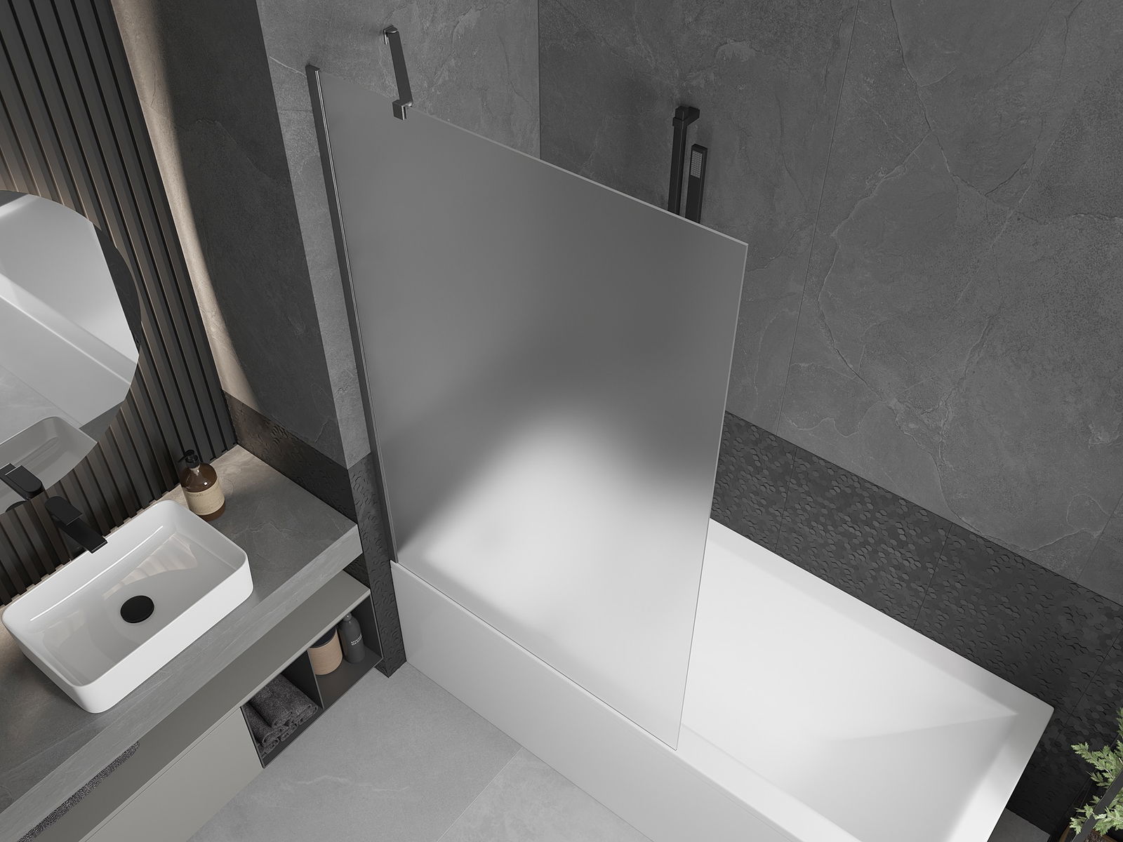 Efektīva aizsardzība pret ūdens izšļakstīšanos peldēšanās laikā. Ekrānam ir blīves, kas ideāli pielāgojas stikla virsmai un vannas malai. Funkcionāls risinājums, kas nodrošina drošību un vieglu tīrību.