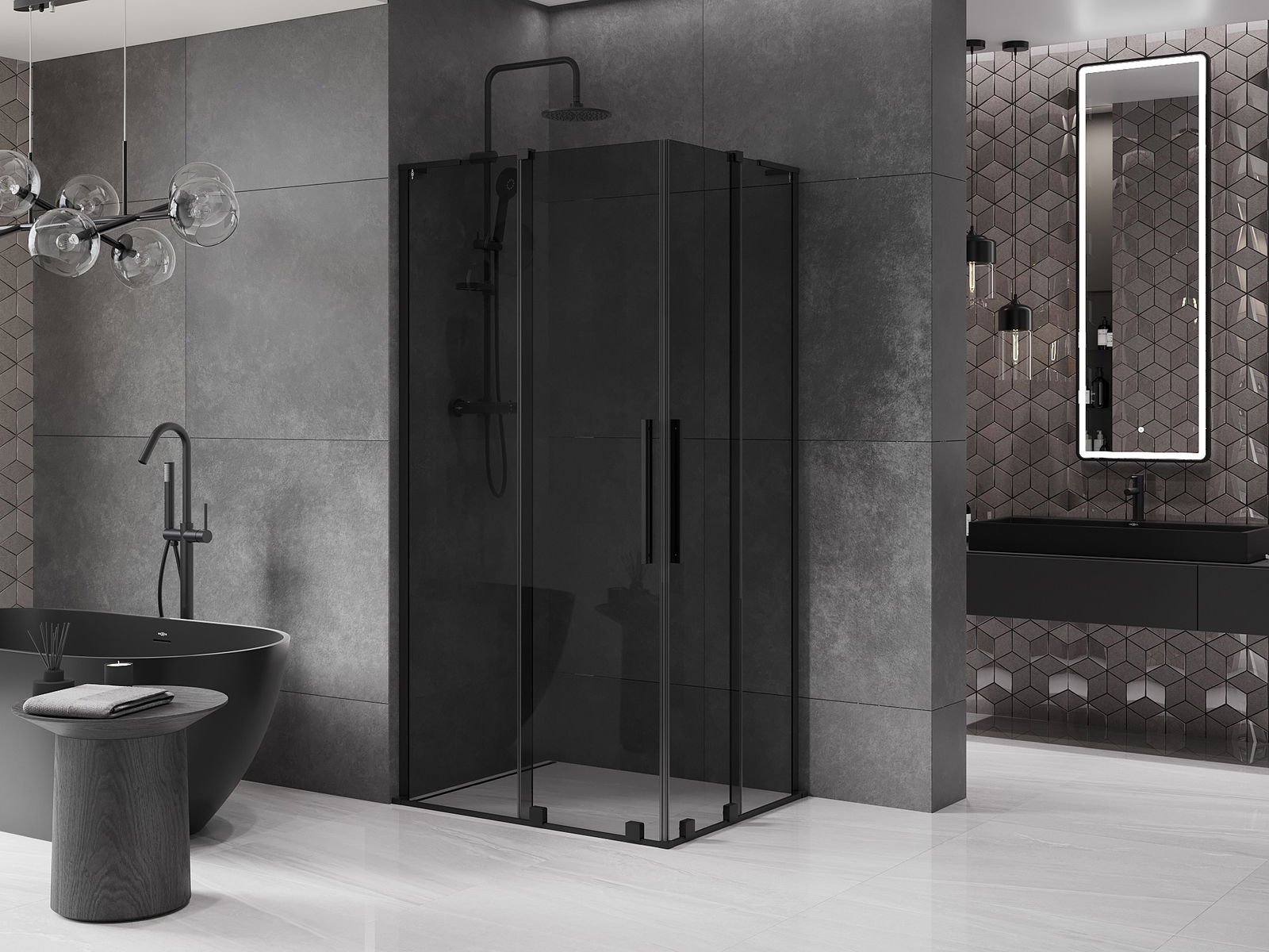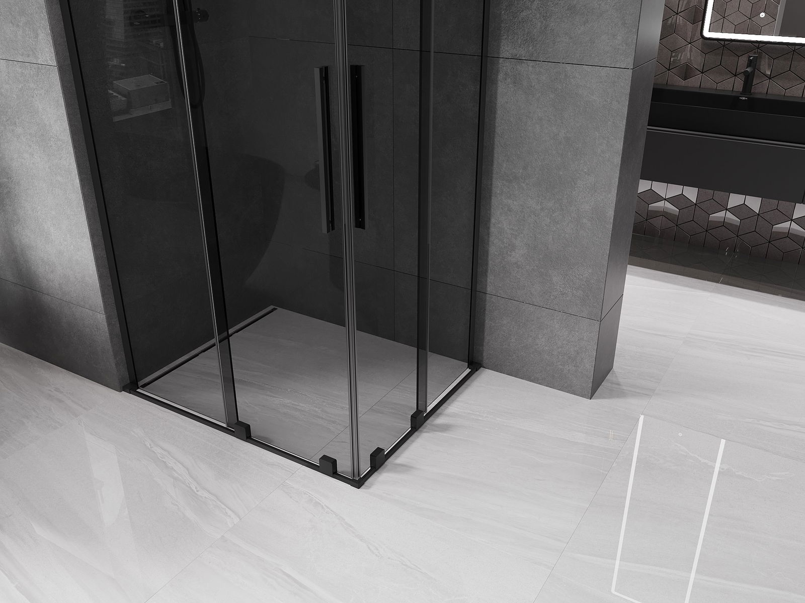 Mexen Velar L Divkārša bīdāmā dušas kabīne 100 x 90 cm, grafīts, melna - 871-100-090-02-43-70