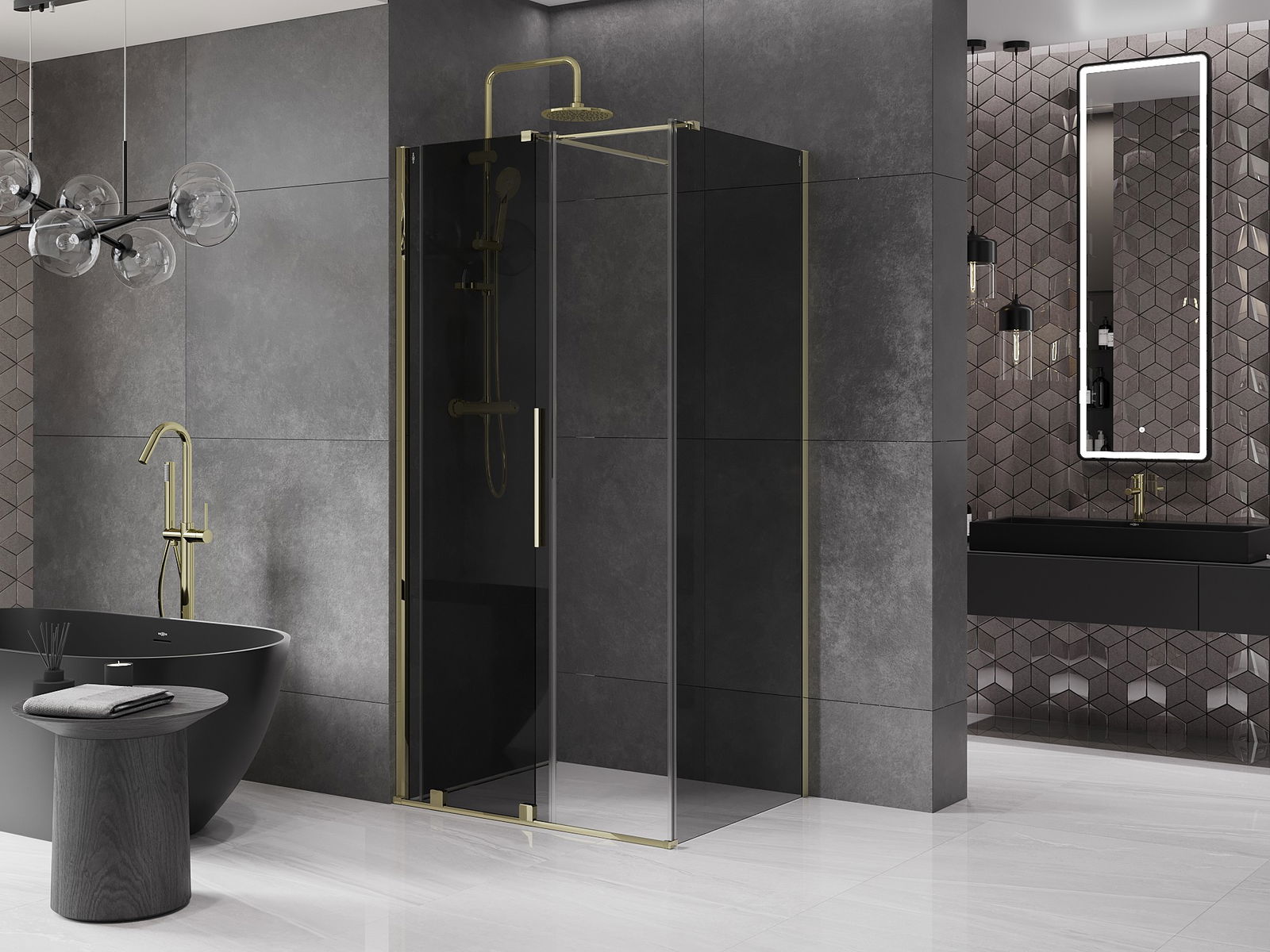 Mexen Velar bīdāmā dušas kabīne 140 x 100 cm, grafīts, zelta - 871-140-100-41-50