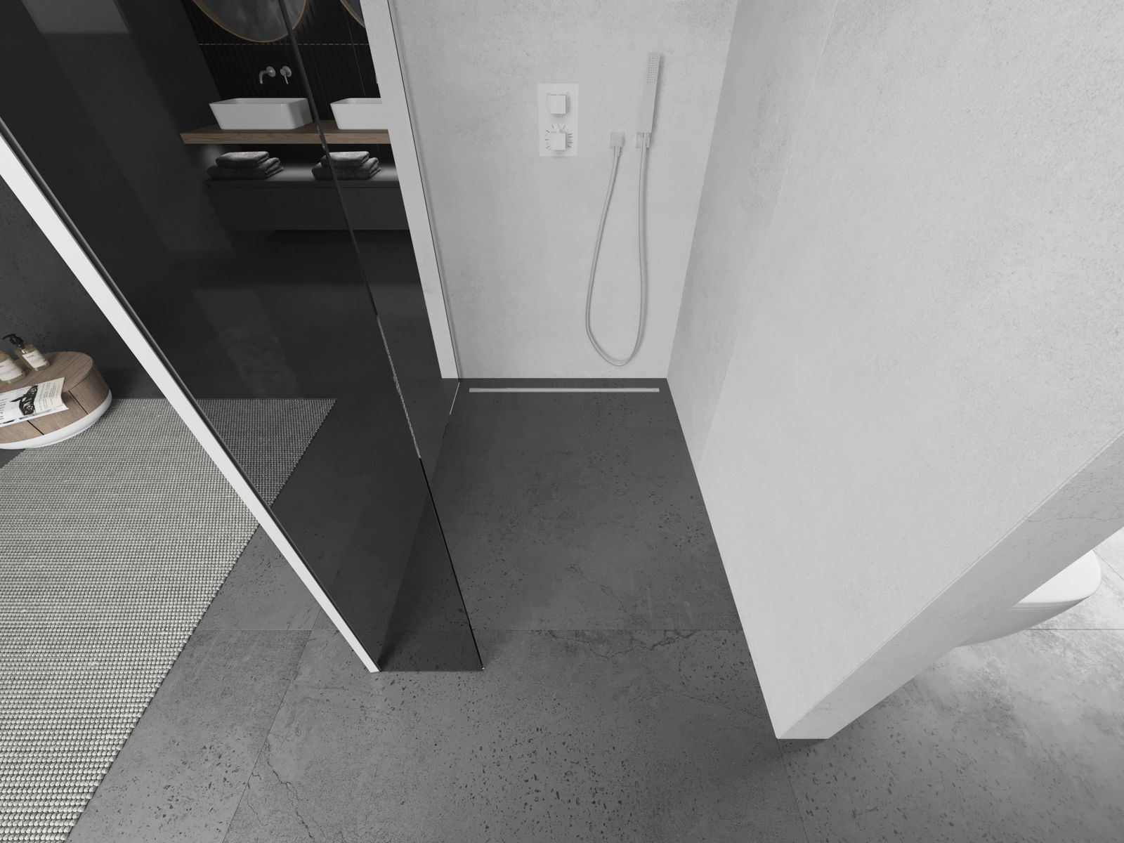 Produktu, atkarībā no vajadzībām, var uzstādīt gan uz dušas paliktņa, gan tieši uz grīdas. Universālā montāžas metode ļauj pielāgot produktu dažāda veida vannas istabām un telpas konfigurācijām.