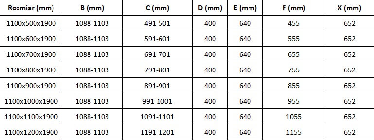 Izmērs: 110x100 cm (durvis 110 cm, siena 100 cm)