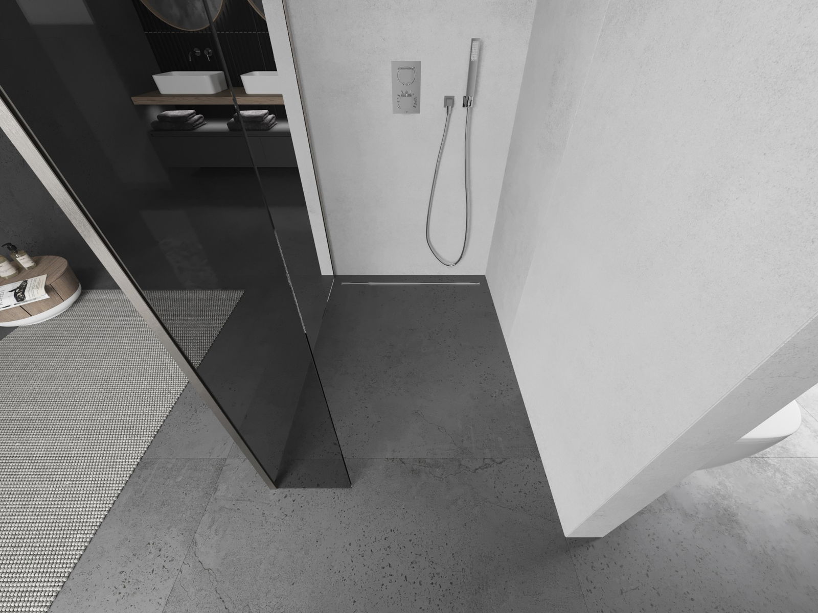 Produktu, atkarībā no vajadzībām, var uzstādīt gan uz dušas paliktņa, gan tieši uz grīdas. Universālā montāžas metode ļauj pielāgot produktu dažāda veida vannas istabām un telpas konfigurācijām.