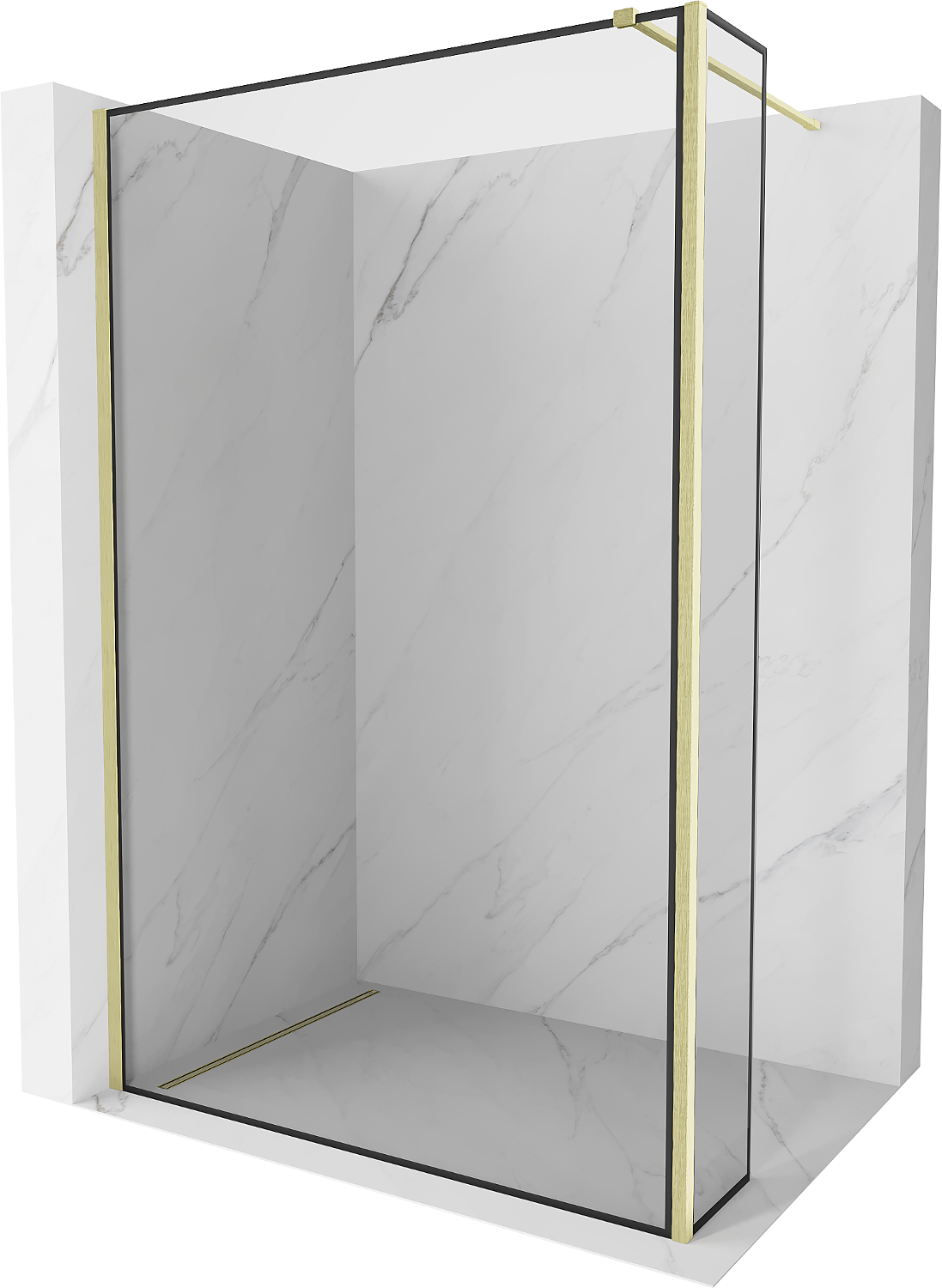 Mexen Kioto duša siena Walk-in 100 x 30 cm, melnkā rāmī, zelta birste - 800-100-212-55-70-030