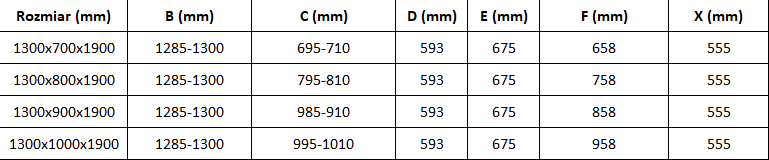 Izmērs: 130x70 cm (durvis 130 cm, siena 70 cm)