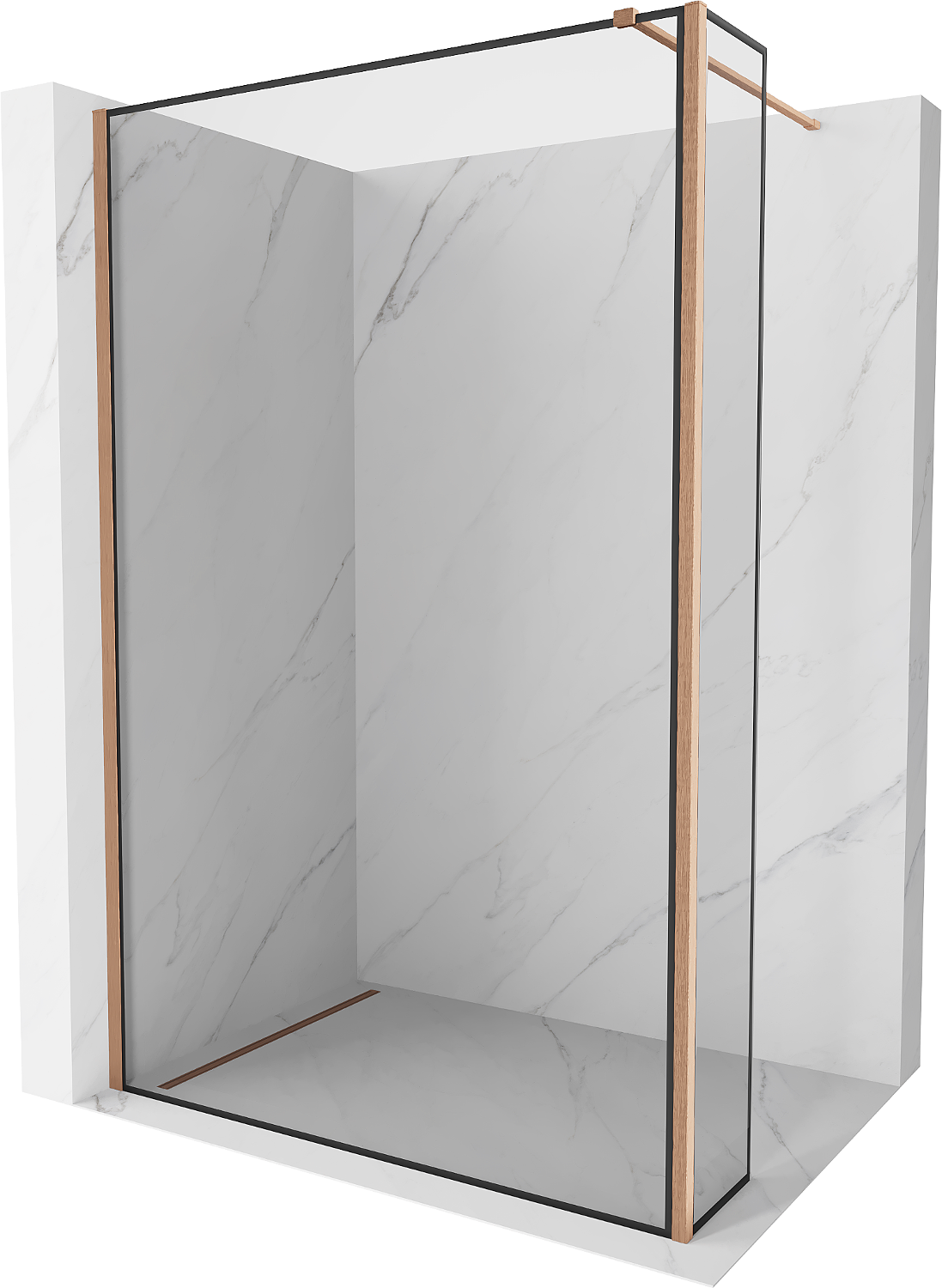 Mexen Kioto duša sienas Walk-in 120 x 30 cm, melns rāmis, matēts varš - 800-120-212-65-70-030