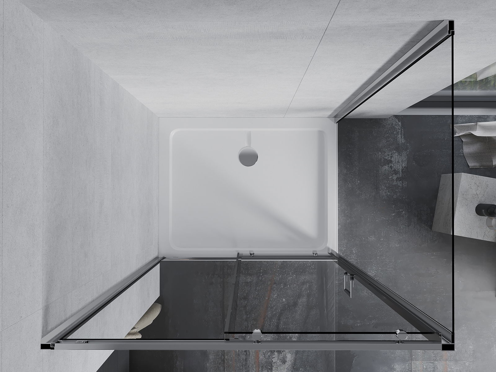 Mexen Apia bīdāmā dušas kabīne 100 x 90 cm, caurspīdīga, hromēta + Flat paliktnis - 840-100-090-01-00-4010
