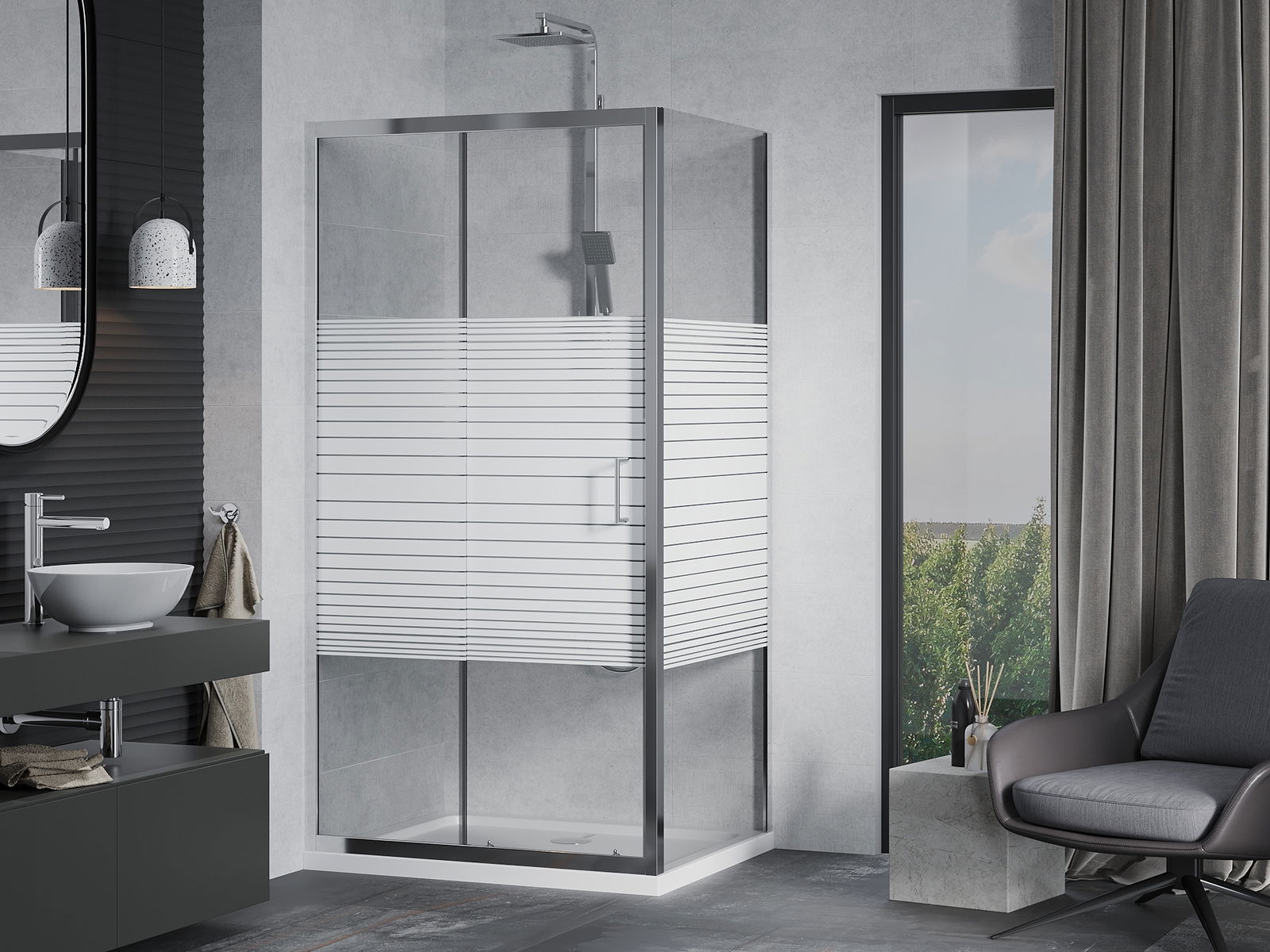 Pateicoties universālās stiprinājumu sistēmas izmantošanai, dušas durvis var tikt uzstādītas no labās vai kreisās puses atkarībā no vajadzībām. Tādejādi vari viegli izplānot dušu, kas pielāgota vannas istabas telpai.