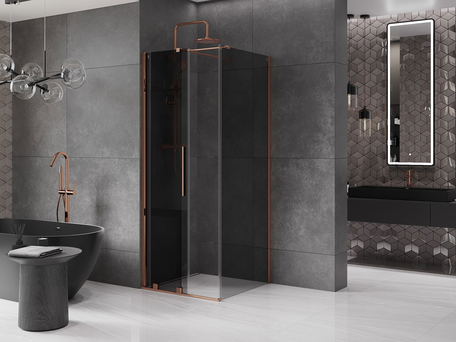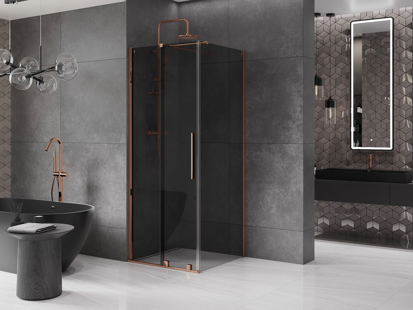 Mexen Velar bīdāma dušas kabīne 110 x 110 cm, grafīta, rozā zelts - 871-110-110-41-60