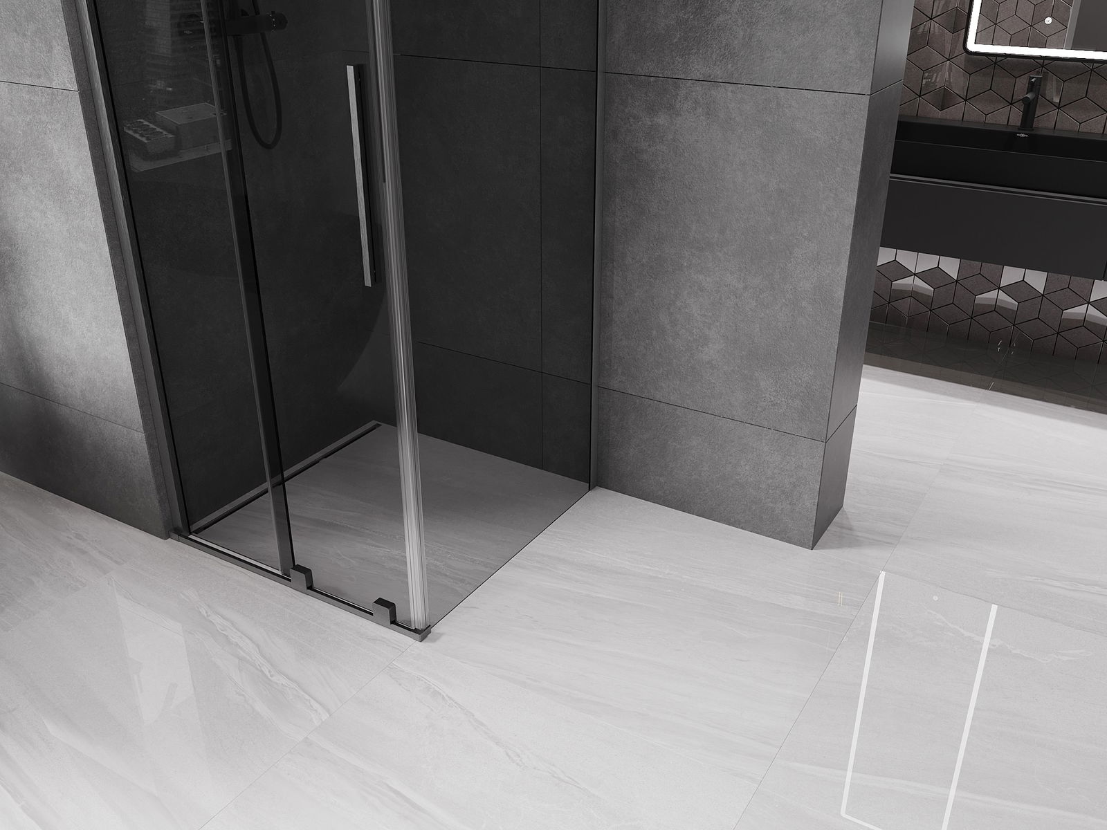 Mexen Velar bīdāma dušas kabīne 90 x 90 cm, grafīta, birstēta ieroču pelēka - 871-090-090-41-66