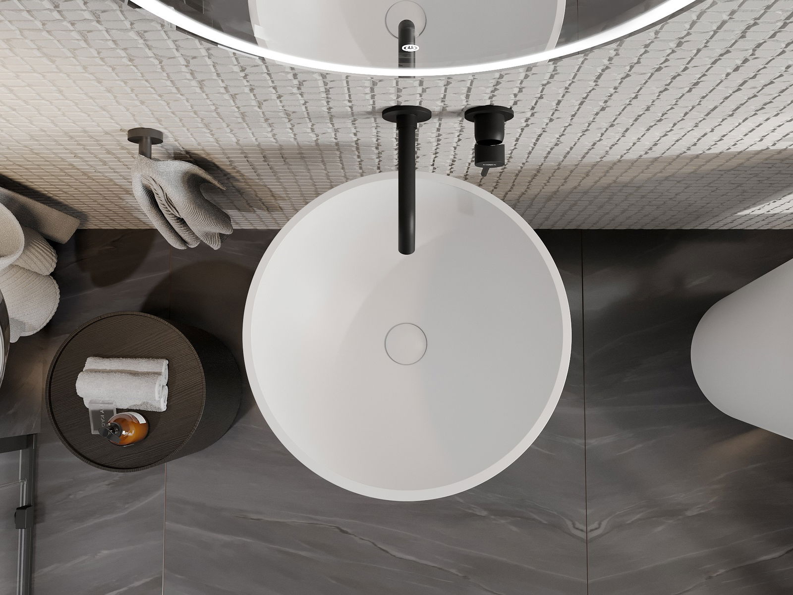 Matētā keramikas virsma lieliski uzsver izstrādājuma krāsas raksturu, piešķirot tam unikālu un izteiksmīgu apdari. Smalkā matētās keramikas struktūra vannas istabā ienes eleganci, radot estētisku telpu.