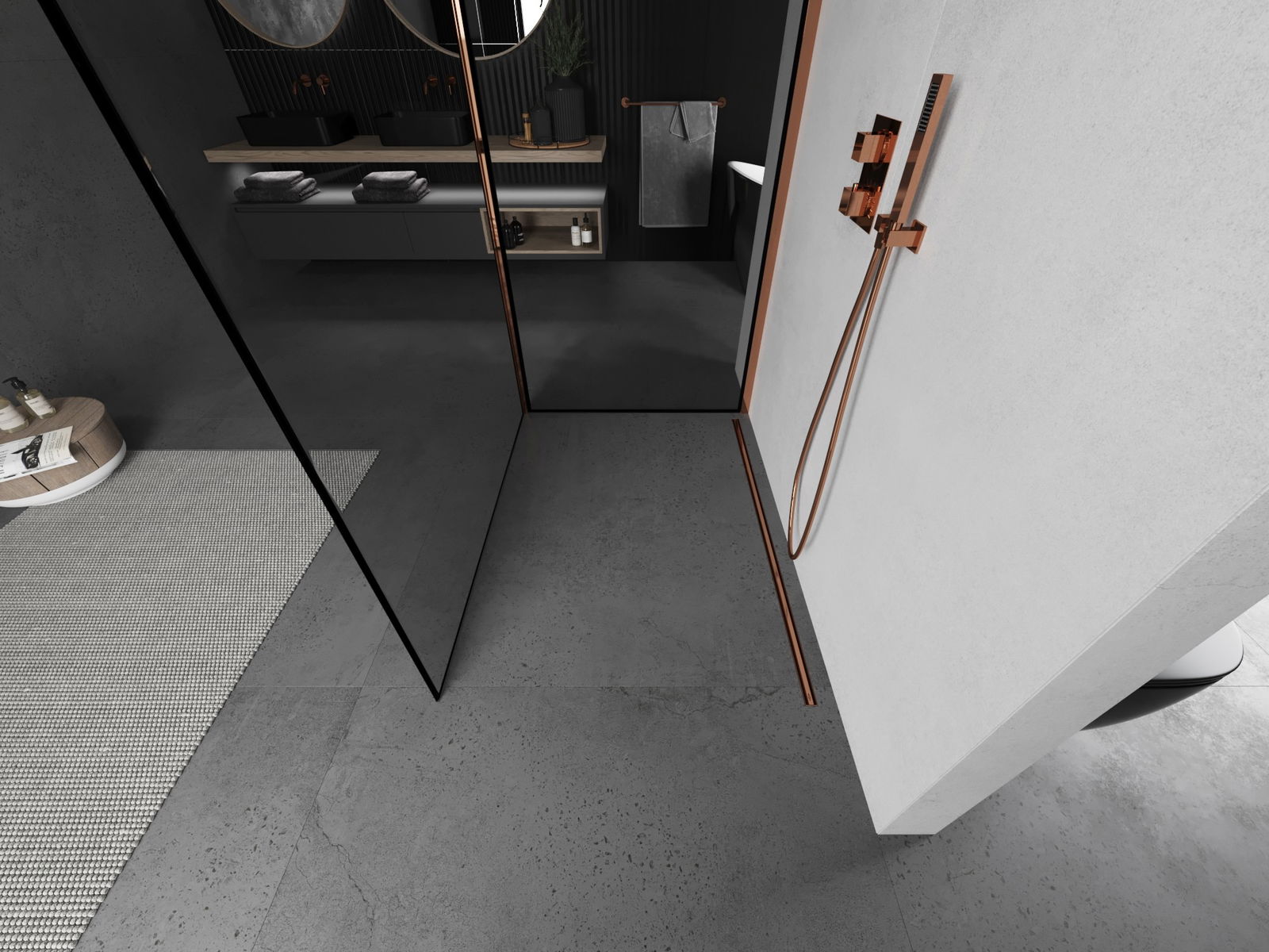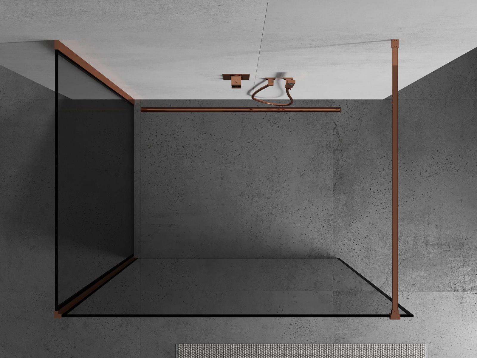 Mexen Kioto duša siena Walk-in 90 x 70 cm, melna ietvars, rozā zelts - 800-090-212-60-70-070