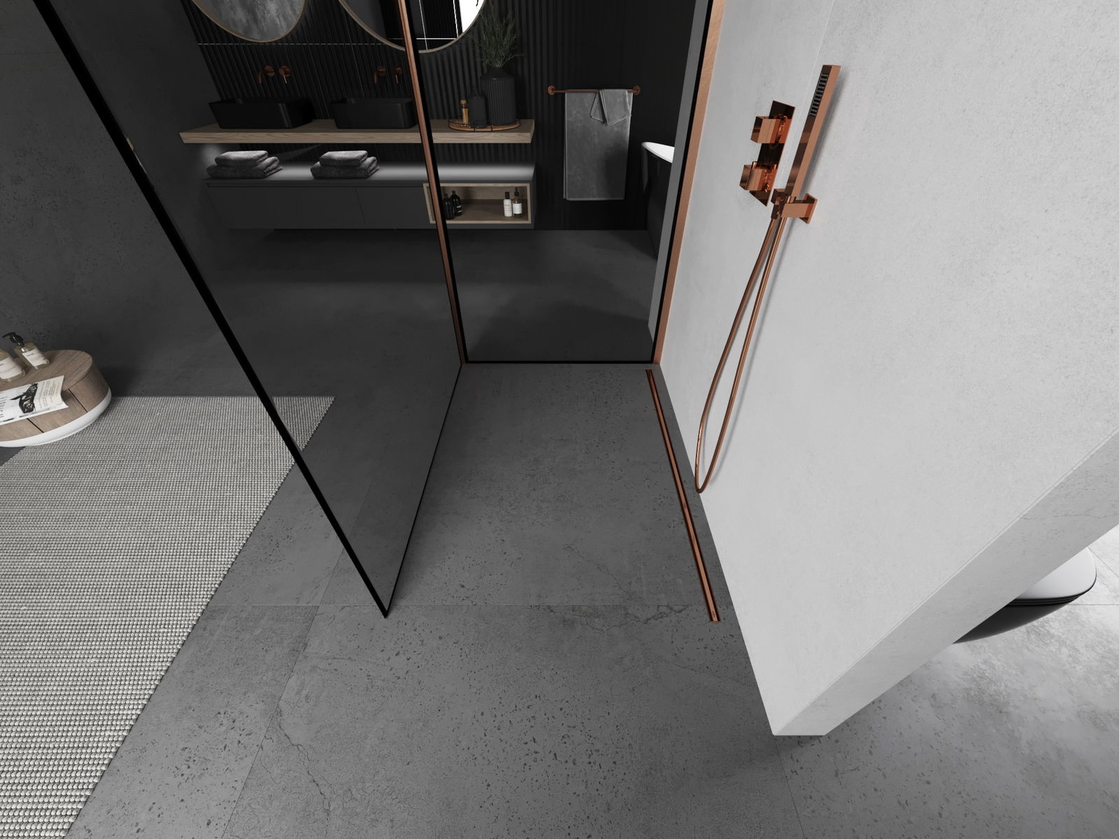 Mexen Kioto dušas siena Walk-in 90 x 90 cm, melns rāmis, pulēts varš - 800-090-212-65-70-090