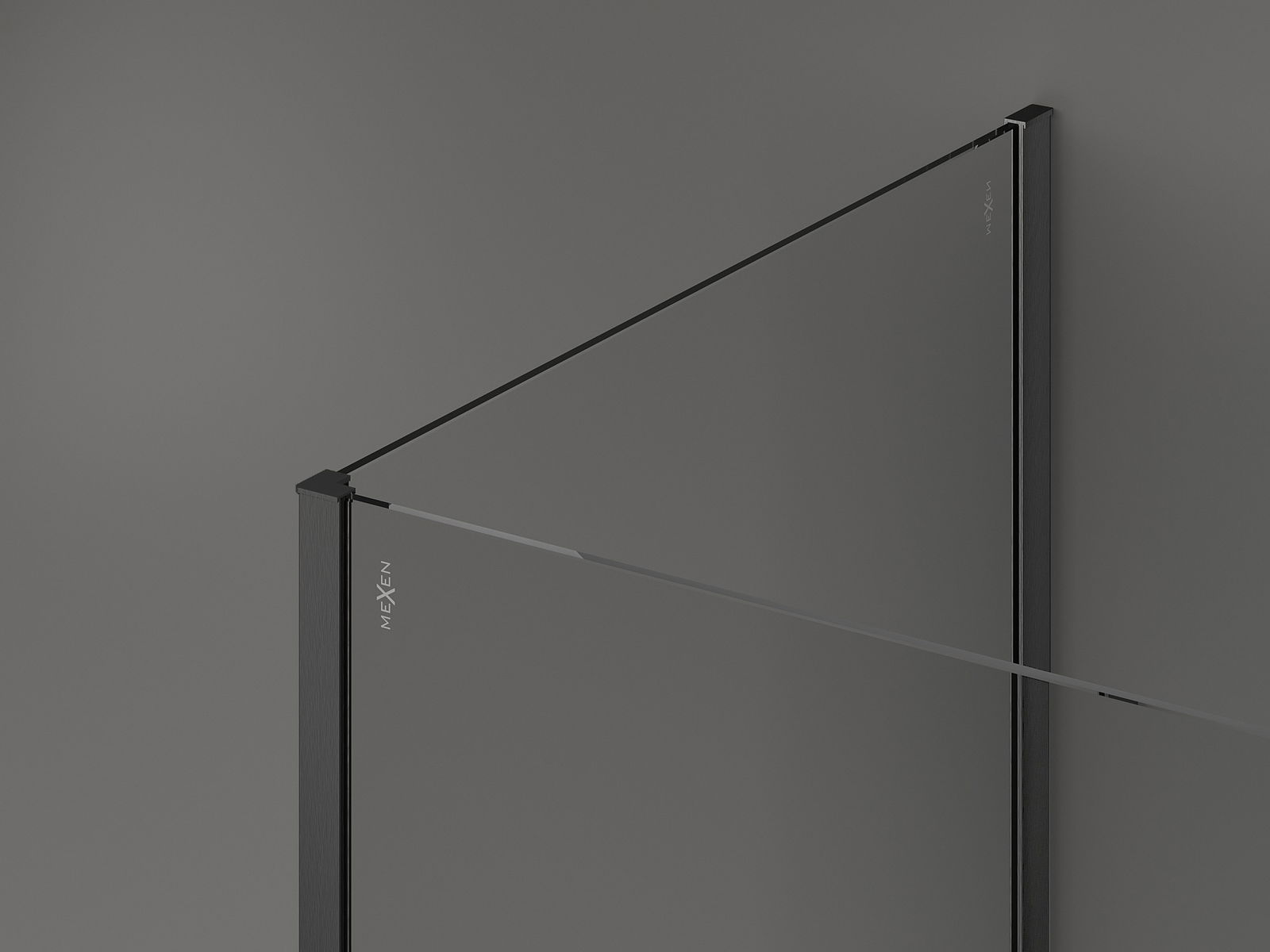Mexen Kioto dušas siena Walk-in 120 x 80 cm, melns rāmis, birstejs pelēks - 800-120-212-66-70-080