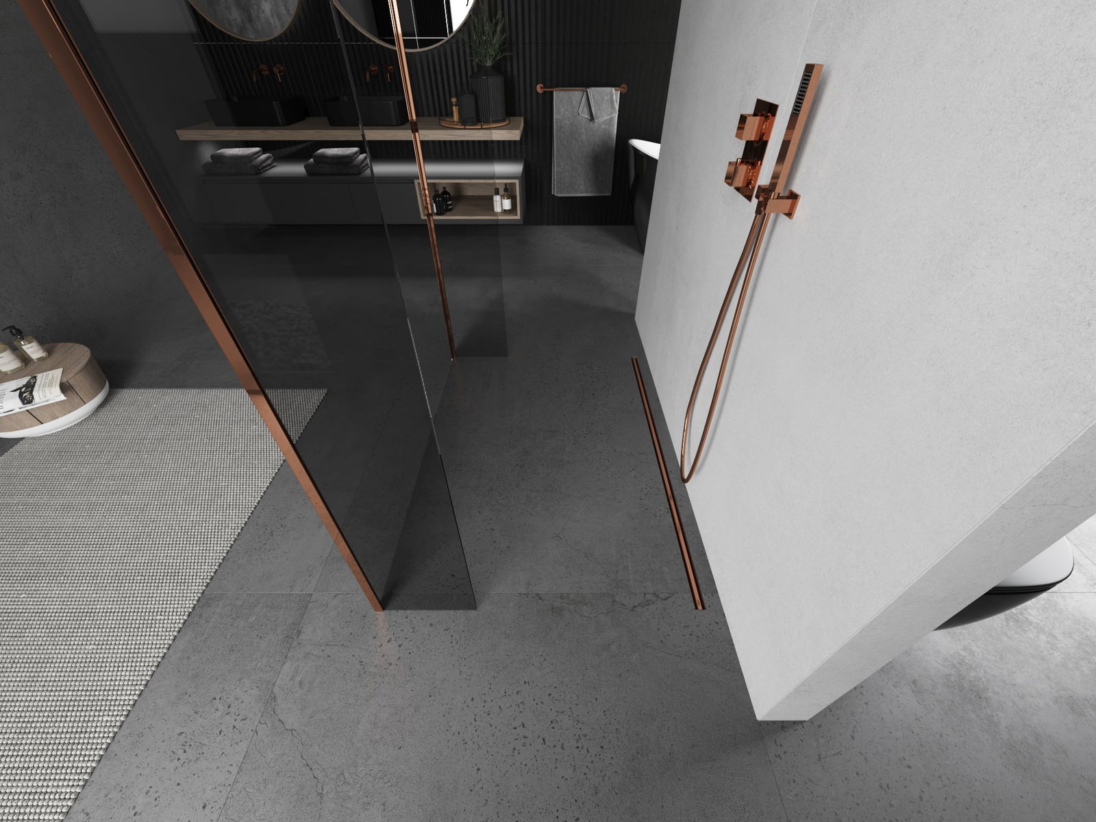 Mexen Kioto brīvi stāvoša dušas siena 155 x 30 x 30 cm, caurspīdīga, rozā zelts - 800-155-030-222-60-00-030