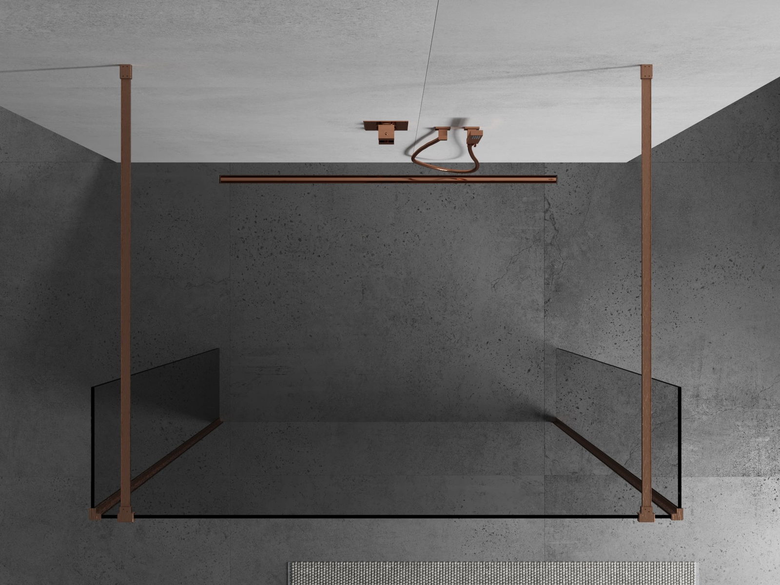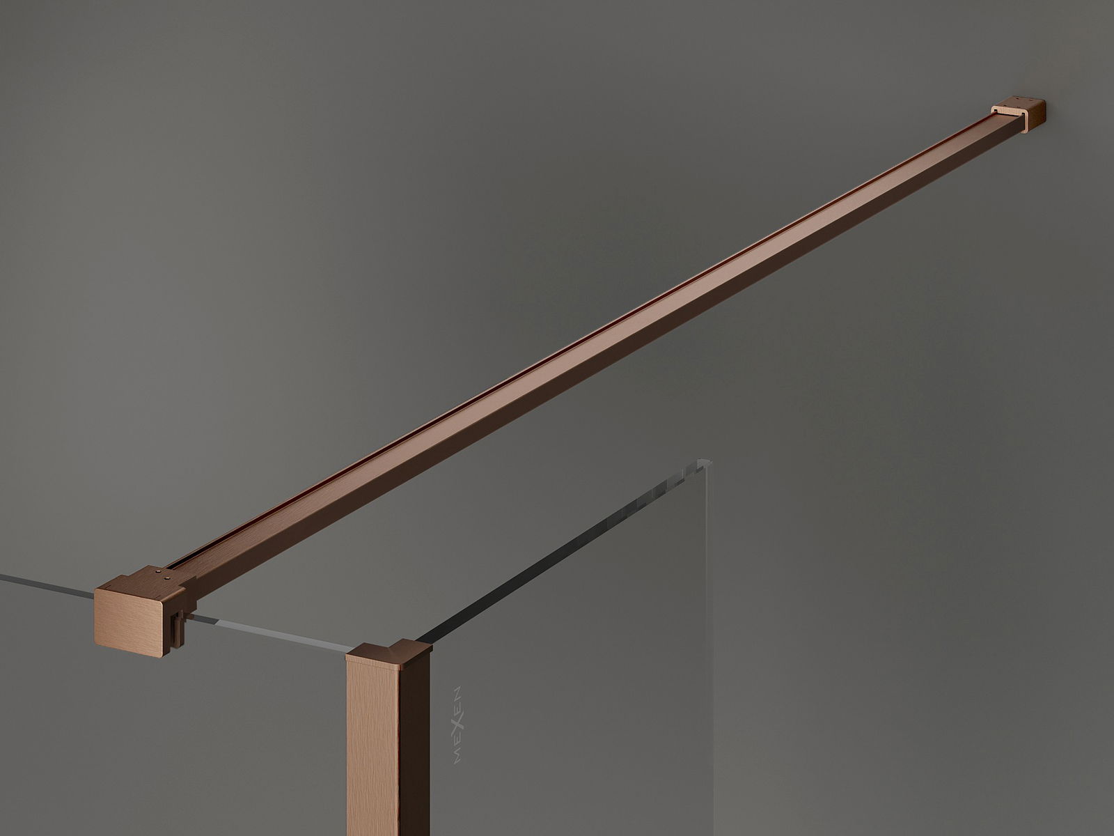 Mexen Kioto Brīvi stāvoša dušas siena 130 x 30 x 30 cm, caurspīdīga, sukas vara - 800-130-030-222-65-00-030