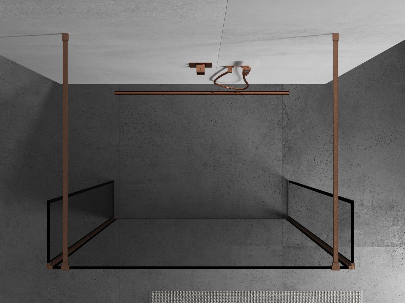 Mexen Kioto brīvi stāvoša dušas siena 100 x 30 x 30 cm, melns rāmis, matēts varš - 800-100-030-222-65-70-030