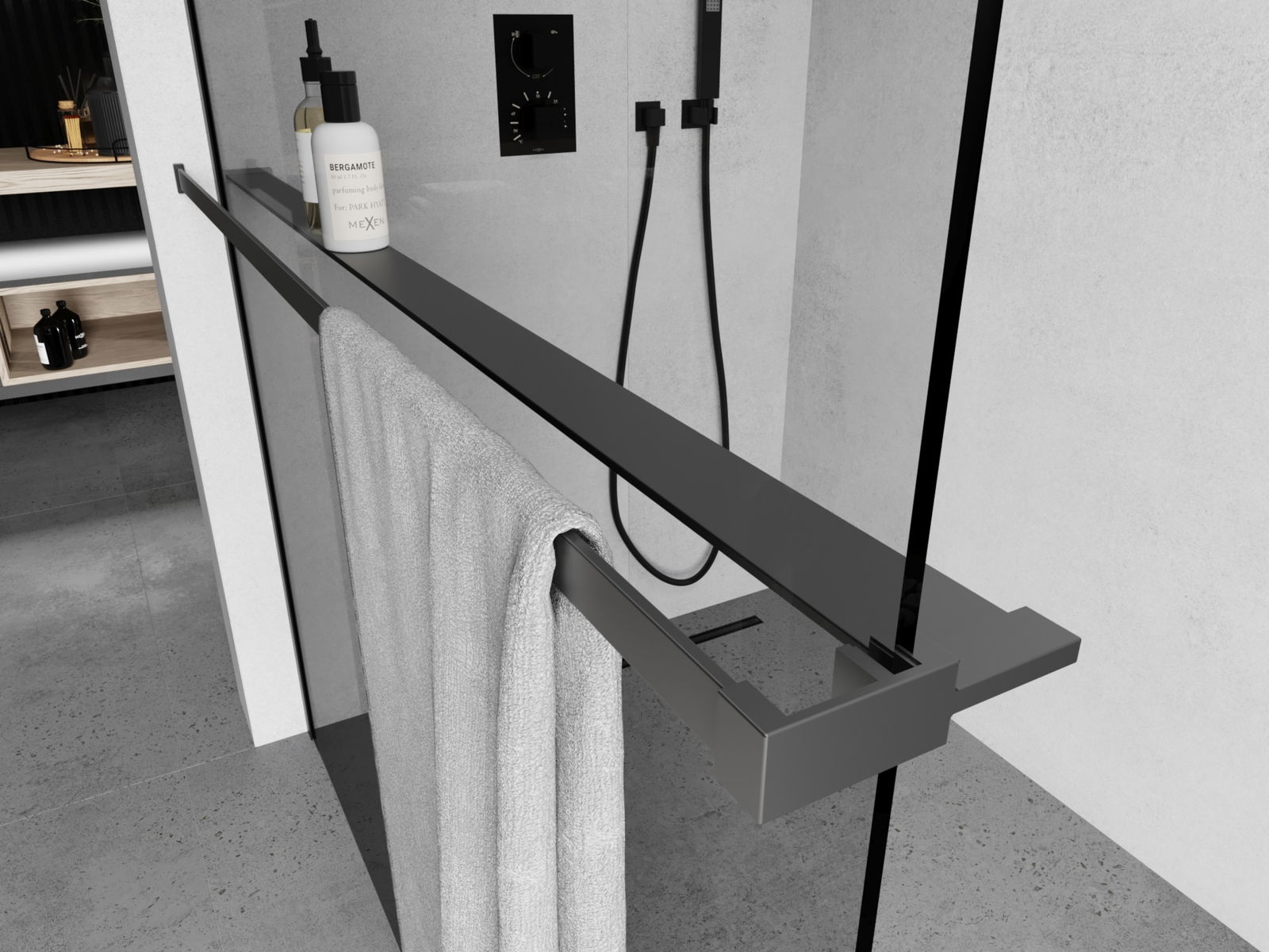 Mexen plaukts dušas sienai ar dvieļu relingu, gun metal - 800-02-95