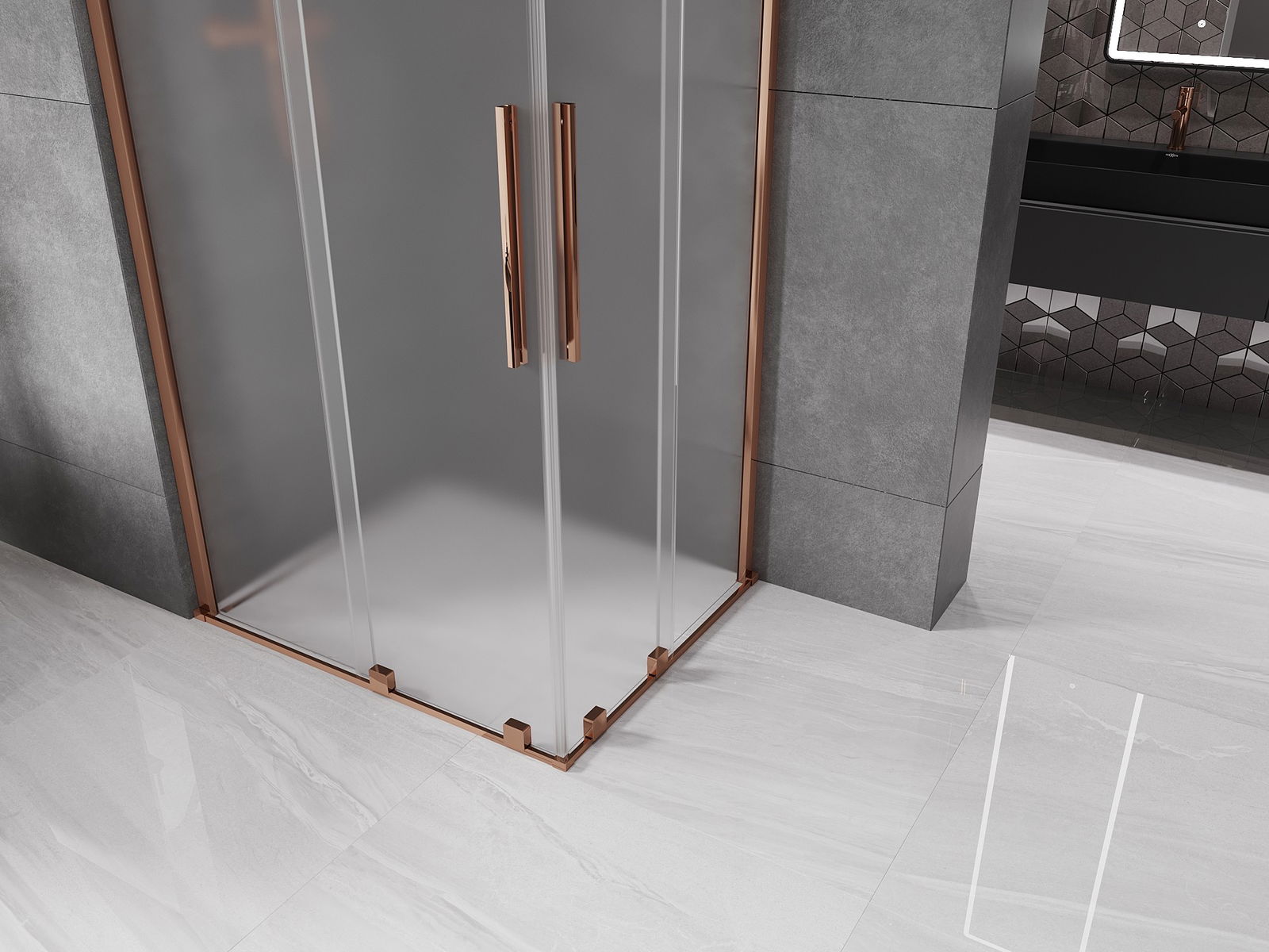 Mexen Velar Duo bīdāmā dušas kabīne 90 x 80 cm, matēta, rozā zelts - 871-090-080-32-60