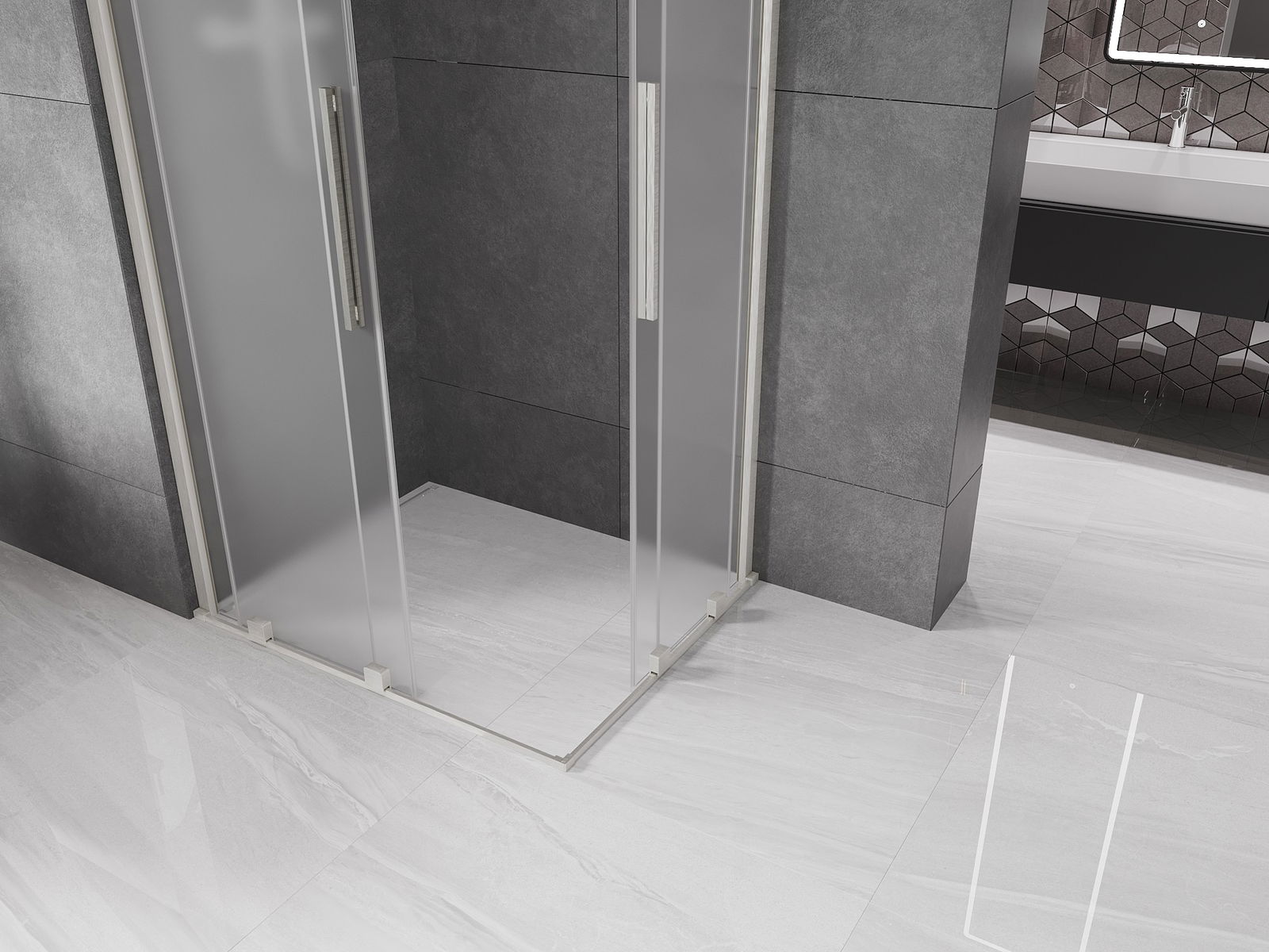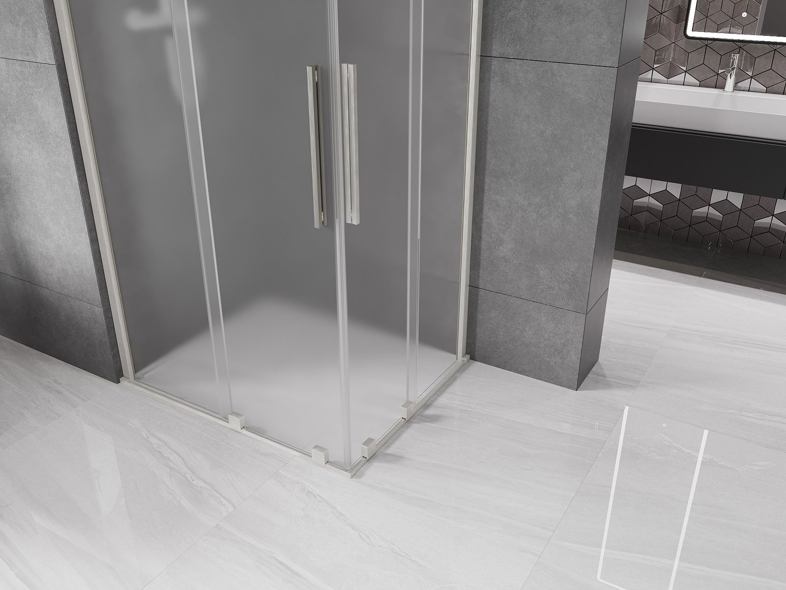 Mexen Velar Duo bīdāmā dušas kabīne 90 x 80 cm, matēta, matēts niķelis - 871-090-080-32-97