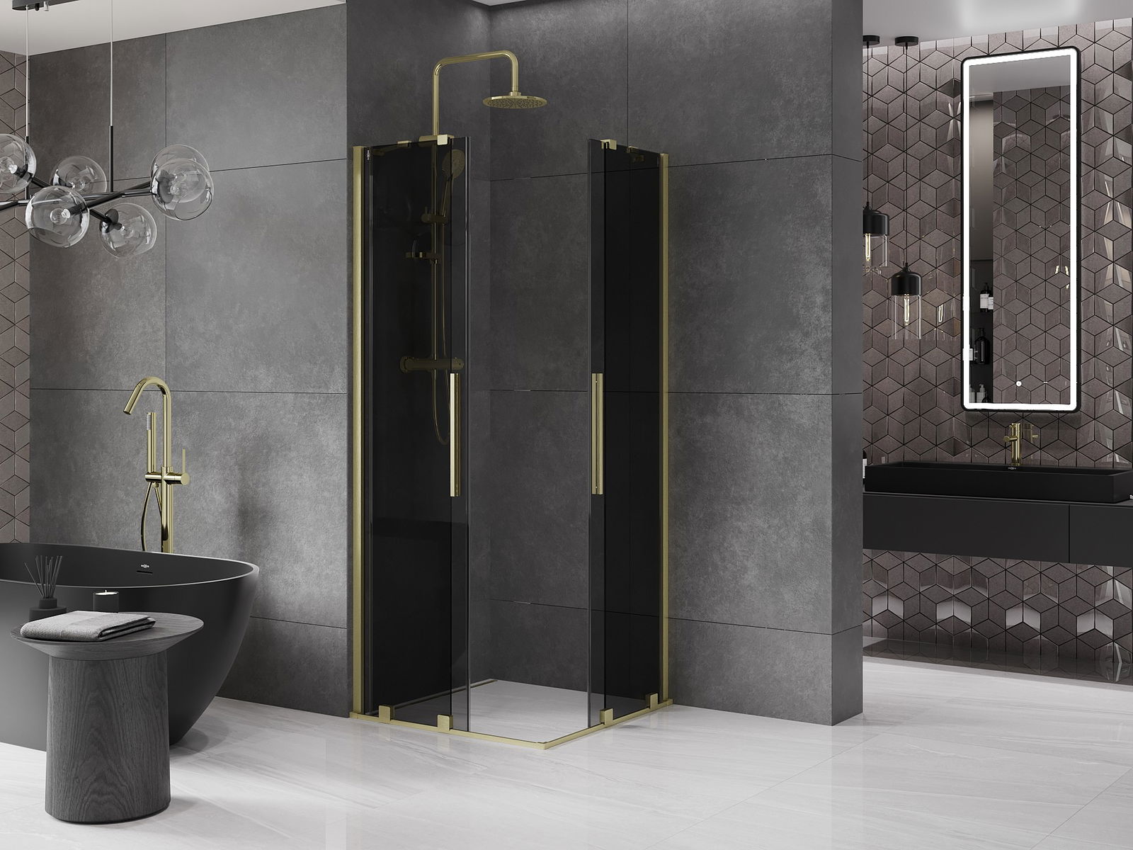 Mexen Velar Duo bīdāmā dušas kabīne 90 x 90 cm, grafīts, zelts matēts - 871-090-090-42-55