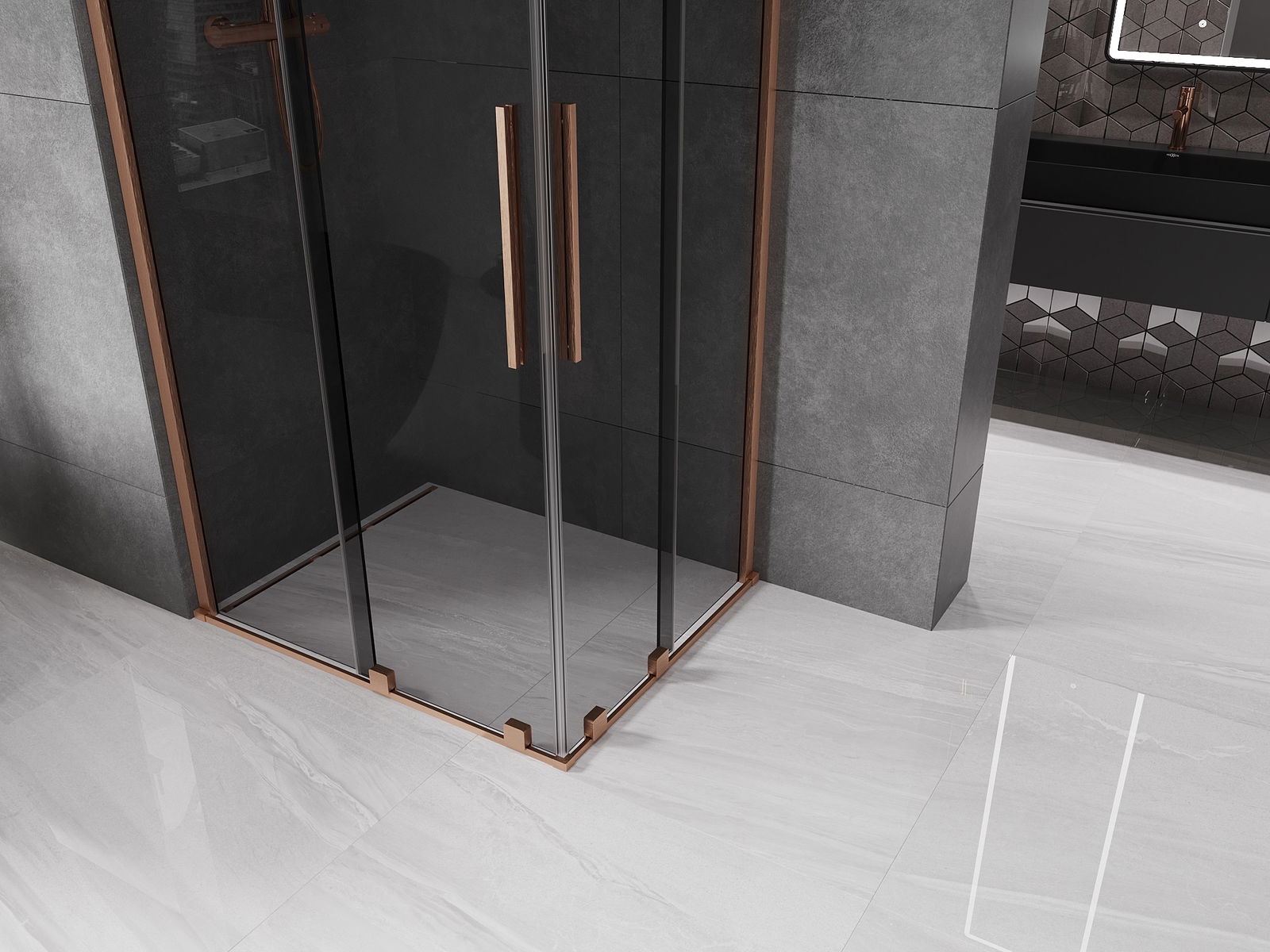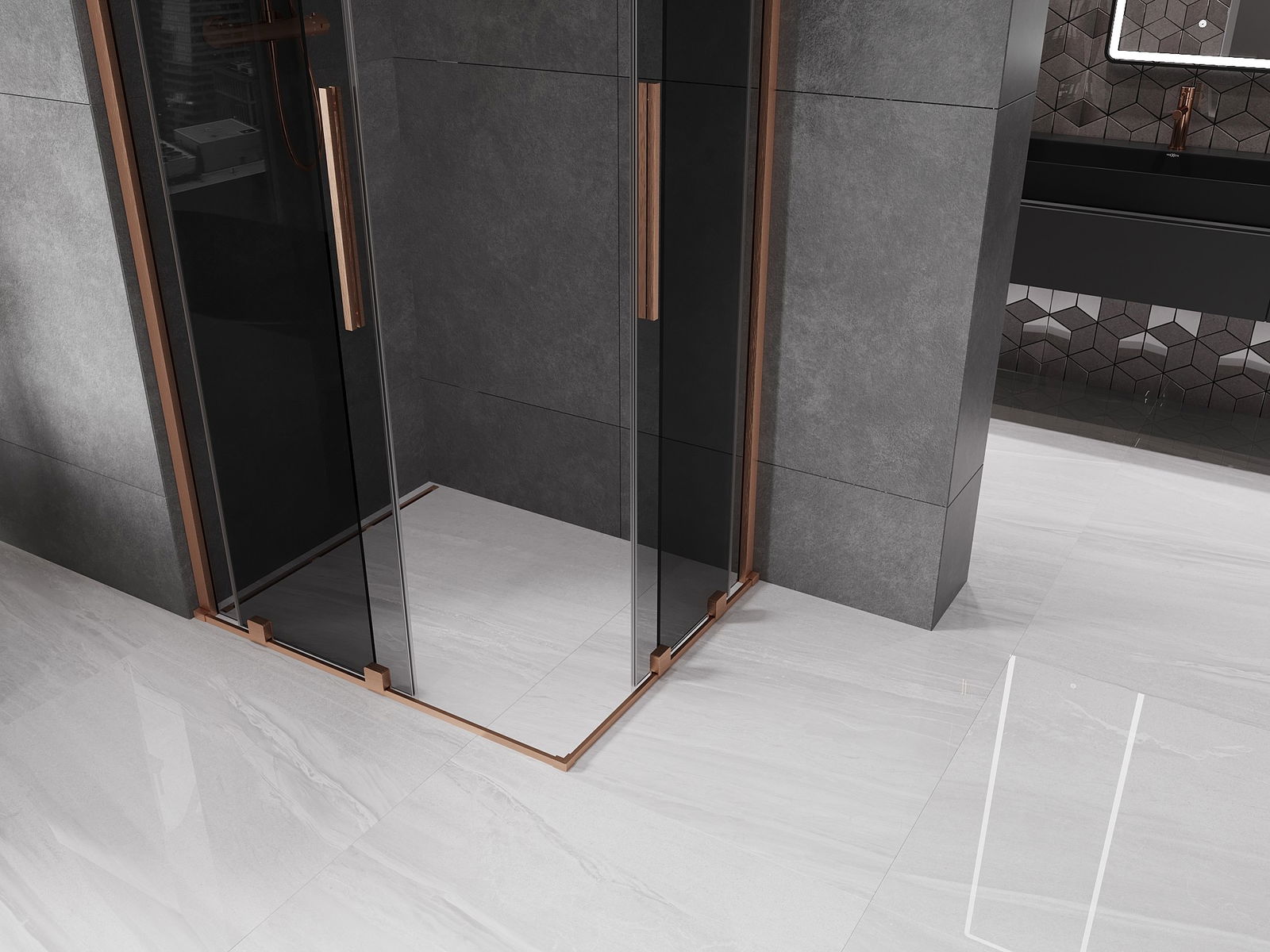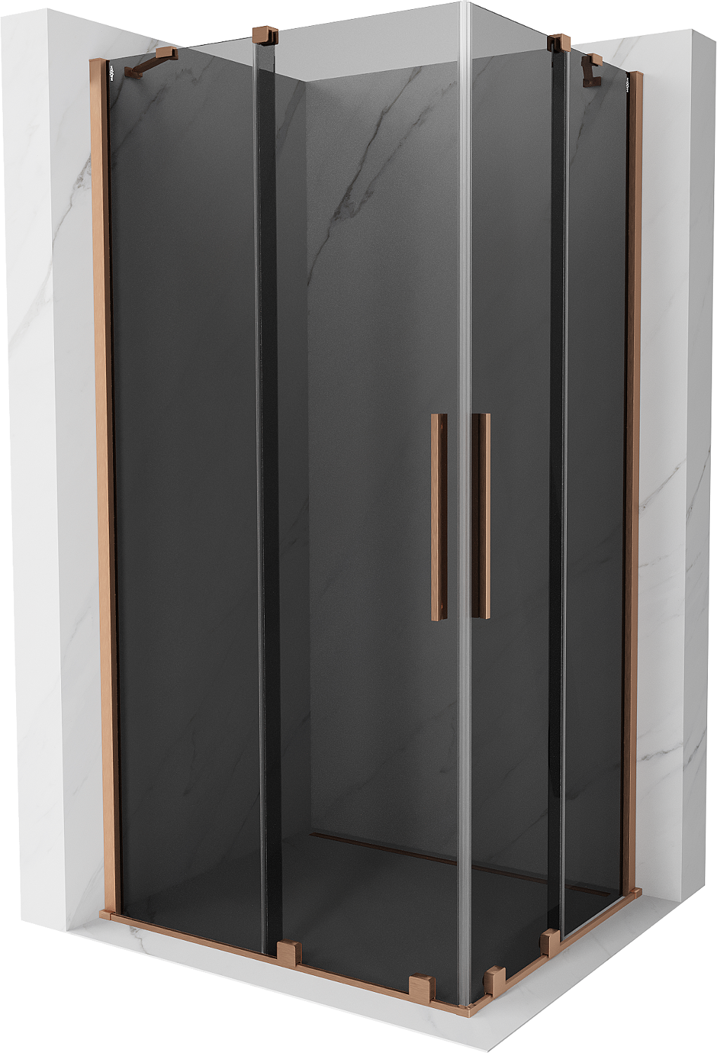 Mexen Velar Duo bīdāmas stikla dušas kabīne 100 x 90 cm, grafīts, matēta varš - 871-100-090-42-65