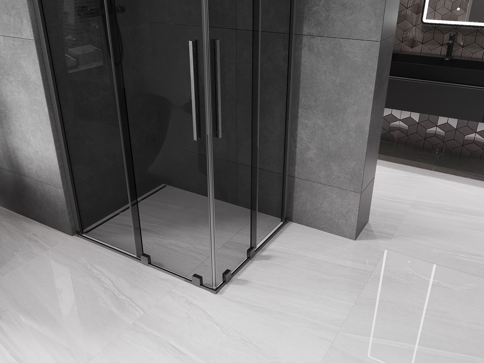 Mexen Velar Duo bīdāmās dušas kabīne 90 x 80 cm, grafīts, matēti pelēka ar sukotu efektu - 871-090-080-42-66