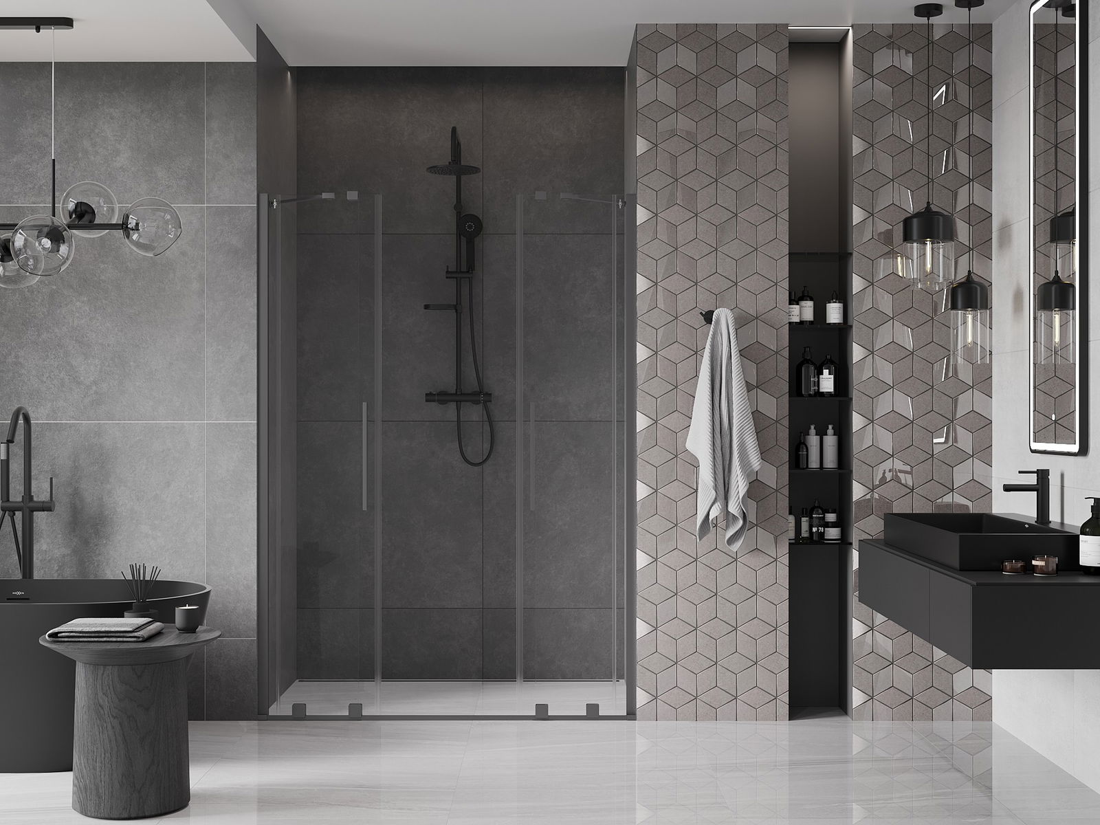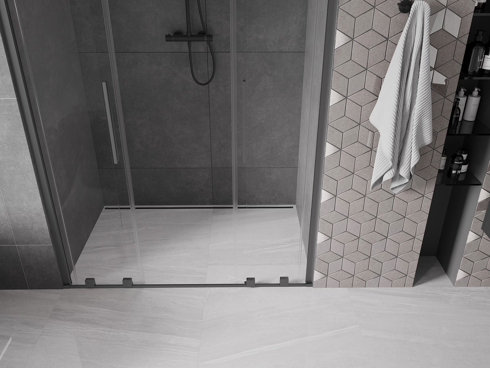 Ērts un parocīgs rokturis ir izgatavots no nerūsējoša tērauda. Modernā forma apvienojumā ar apdari, kas saskaņota ar profilu krāsu, piešķir kopējo modernu un stilīgu izskatu, izceļot katras vannas istabas estētiku.