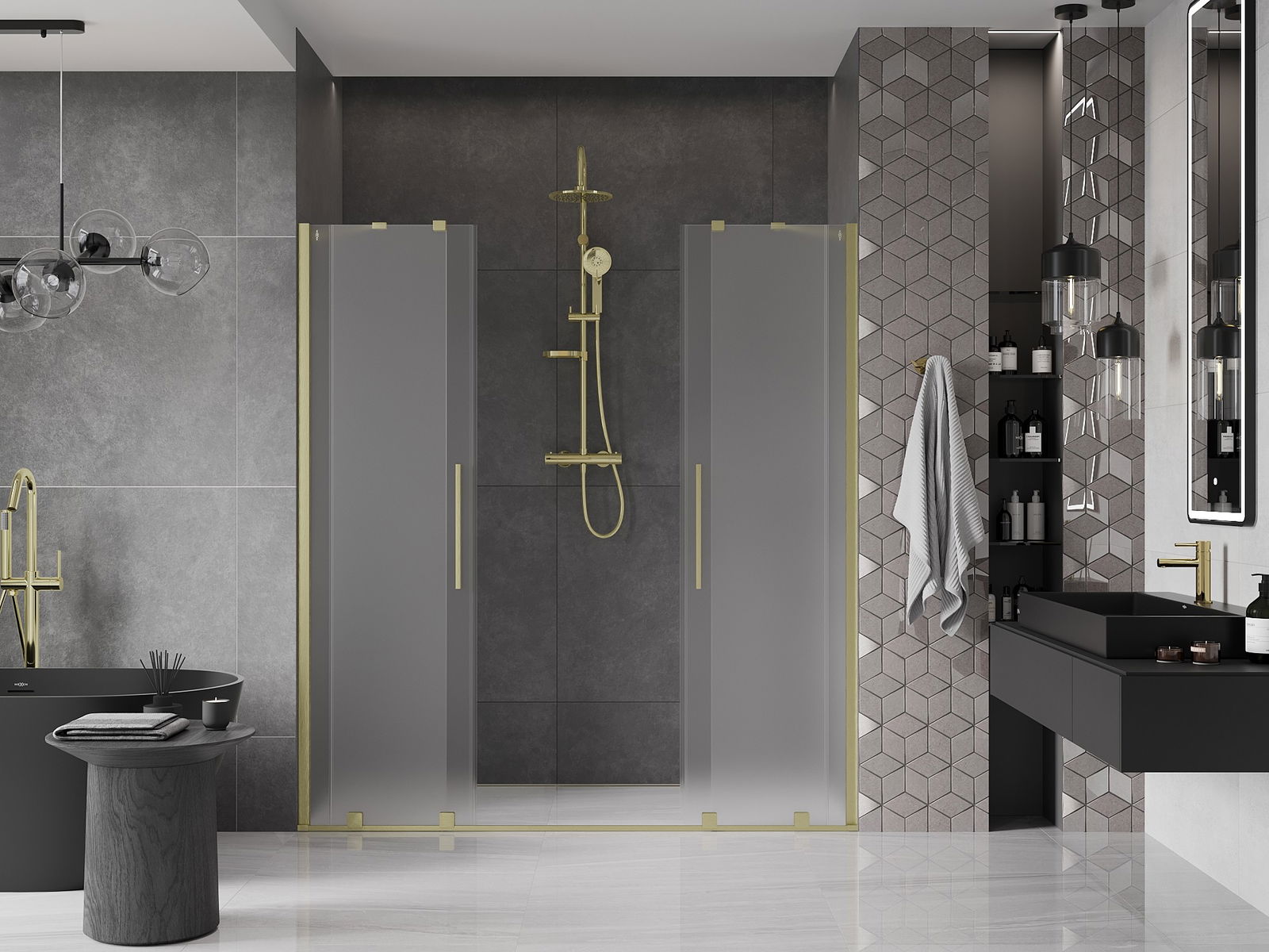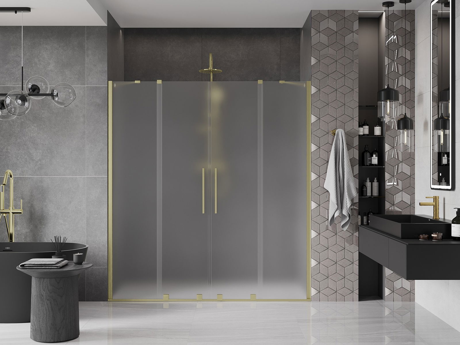 Mexen Velar Duo bīdāmās dušas durvis 200 cm, matētas, zelta matētas - 871-200-000-32-55