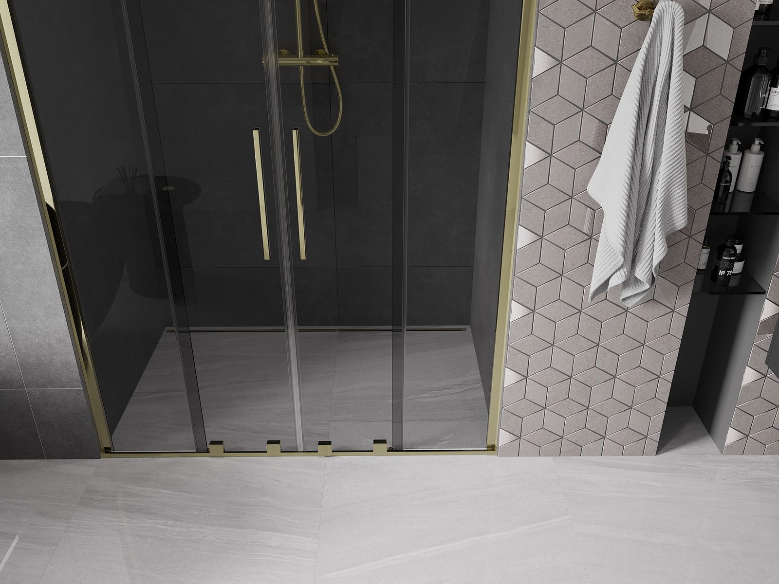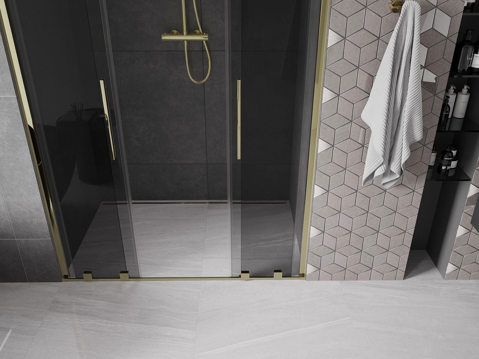 Mexen Velar Duo bīdāmās dušas durvis 140 cm, grafīts, zelta - 871-140-000-42-50